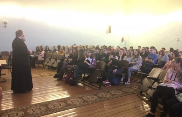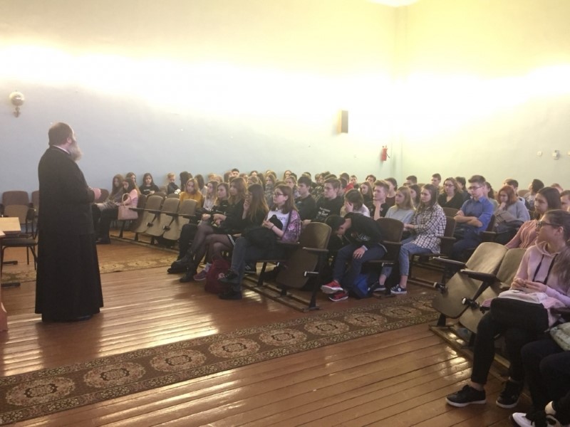 Благочинный Ярцевского округа протоиерей Василий Мовчанюк побеседовал со старшеклассниками средней школы №10 города Ярцева.