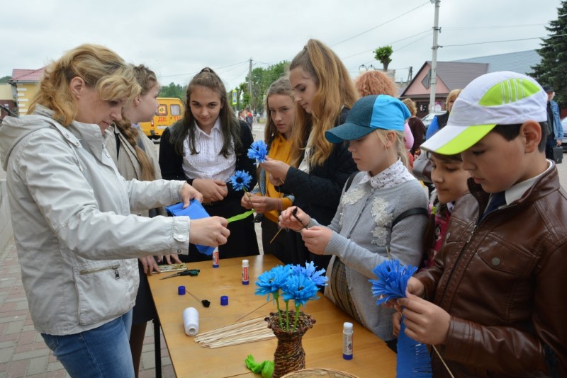 Также во время проведения концерта, организованного воспитанниками Дома детского творчества, на улице проходили мастер-классы, в которых принимали участие пришедшие на праздник ребята.