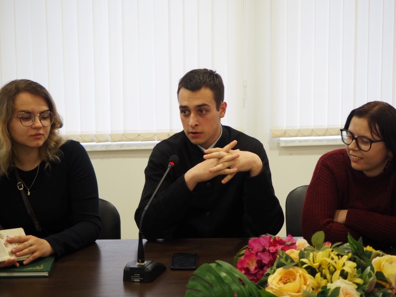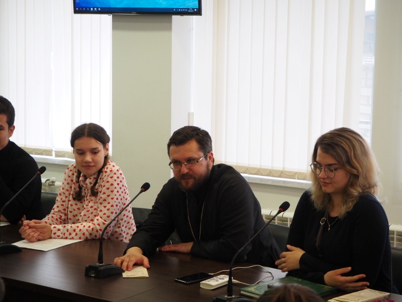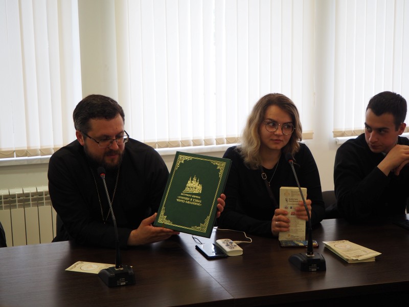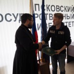 В завершение встречи руководитель проекта, руководитель Отдела Смоленской епархии по взаимоотношениям с обществом и СМИ протоиерей Валерий Рябоконь поблагодарил руководство университета и студентов за теплый прием и вручил специалисту отдела по работе со студенческими организациями Олегу Владимировичу Никифорову альбом, посвященный 25-летнему служению Патриарха Кирилла на Смоленской земле «Россию я узнал через Смоленск».