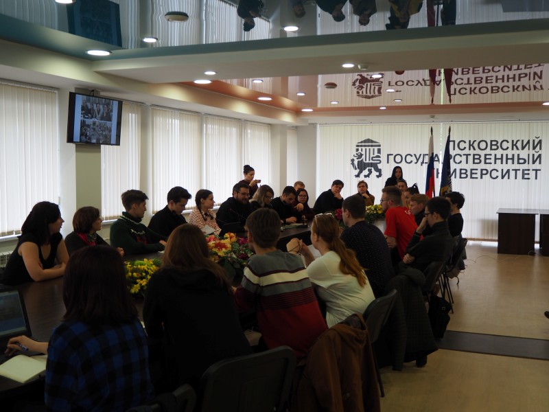 Представленная презентация вызвала живой интерес студентов ПсковГУ, присутствующих на встрече, ведь Псков является таким же древним и уникальным городом, как и Смоленск, со своей богатейшей историей.