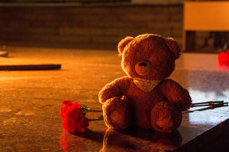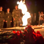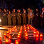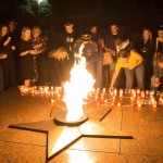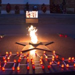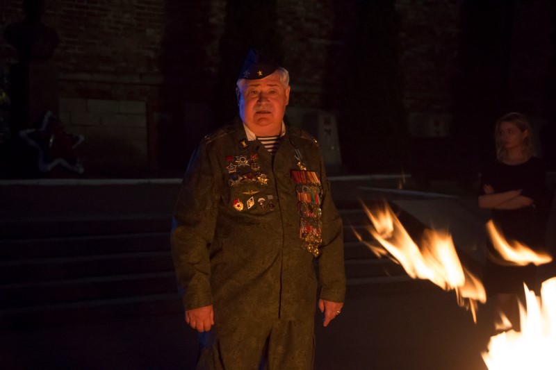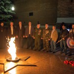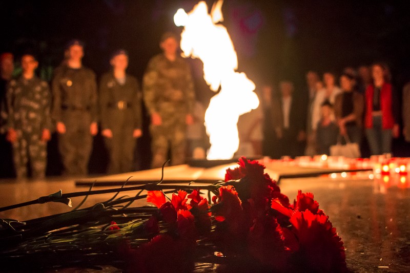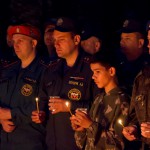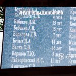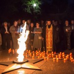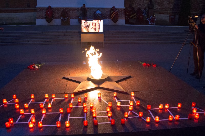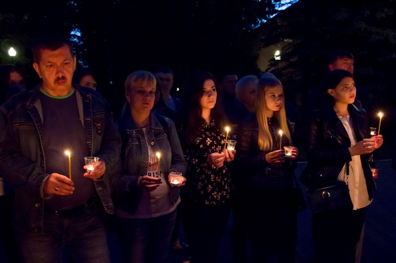 К Вечному огню были возложены цветы и мягкие игрушки, а из горящих свечей выложена надпись: «Ангелы Донбасса»; участники митинга почтили память погибших минутой молчания.