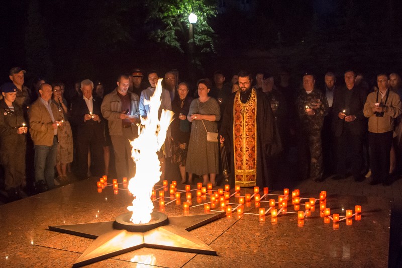 Митинг памяти начался в 22:00 у мемориала «Вечный огонь» в Сквере памяти Героев. На экране, установленном у мемориала, транслировался фильм «Ангелы Донбасса». Ведущий рассказал о ситуации в ДНР, количестве погибших за годы вооруженного конфликта детей. Кадры из фильма служили иллюстрацией к рассказу.