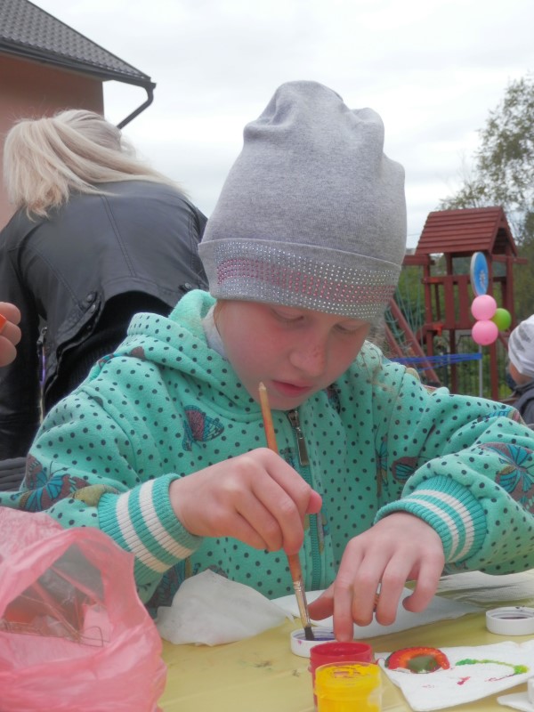 Аня очень добрый и чуткий человек и умеет находить общий язык не только с самыми маленькими детками, но и с ребятами постарше. Вот, что она рассказала: «От желающих раскрасить фигурки не было отбоя. Это не только очень интересное занятие, но еще и возможность унести с собой с праздника сувенир, созданный своими руками. Некоторые мальчишки раскрашивали кулоны, чтобы подарить мамам или сестрам. От праздника осталось много положительных эмоций, потому что, когда приносишь радость другим, и у самого на душе радостно».
