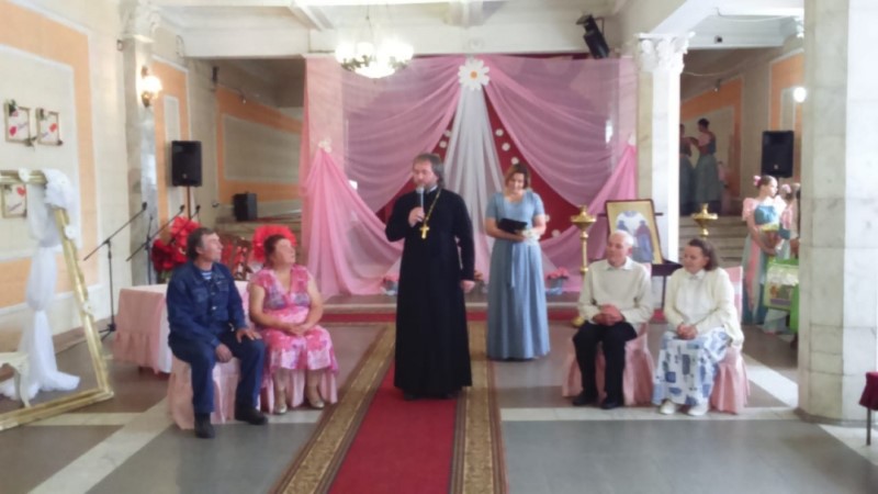По благословению благочинного Ярцевского округа протоиерея Василия Мовчанюка, праздничное мероприятие посетил настоятель Скорбященского храма города Ярцево иерей Евгений Пономарев. Иерей Евгений поздравил всех с праздником, напомнив о жизни святых Петра и Февронии, которые стали примером супружеской верности, преданности и любви.