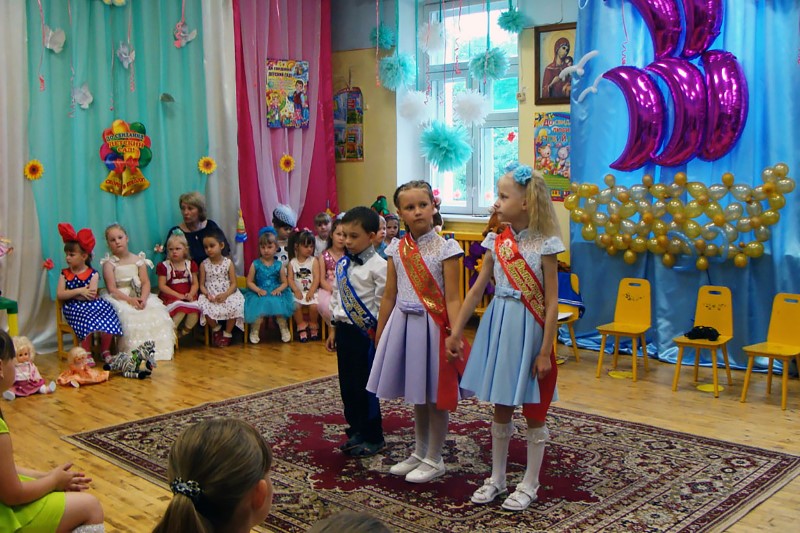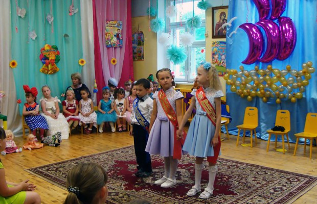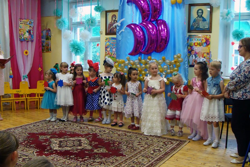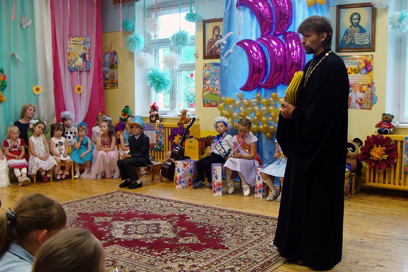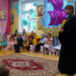 Дети и воспитатели подготовили праздничное выступление для выпускников сада, а также родителей, гостей и духовенства. Много добрых напутственных слов дети услышали от воспитателей, родителей и священства.