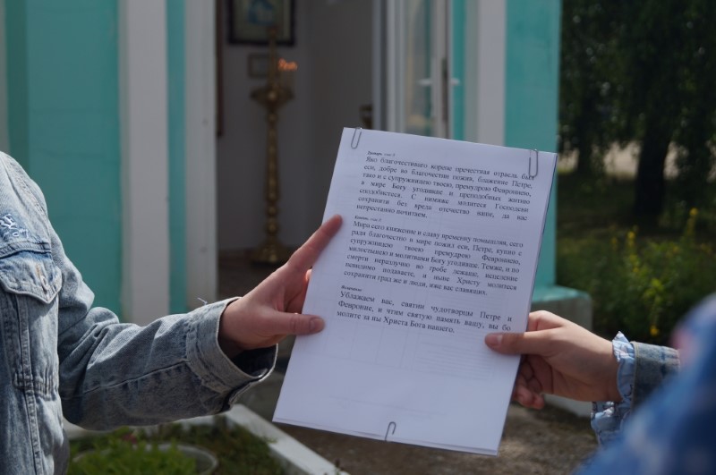 После молитвы к собравшимся обратился протоиерей Валентин, который поздравил всех с праздником и пожелал постоянно иметь образ святого жития Петра и Февронии, и в минуты трудностей прибегать к их молитвенной помощи.