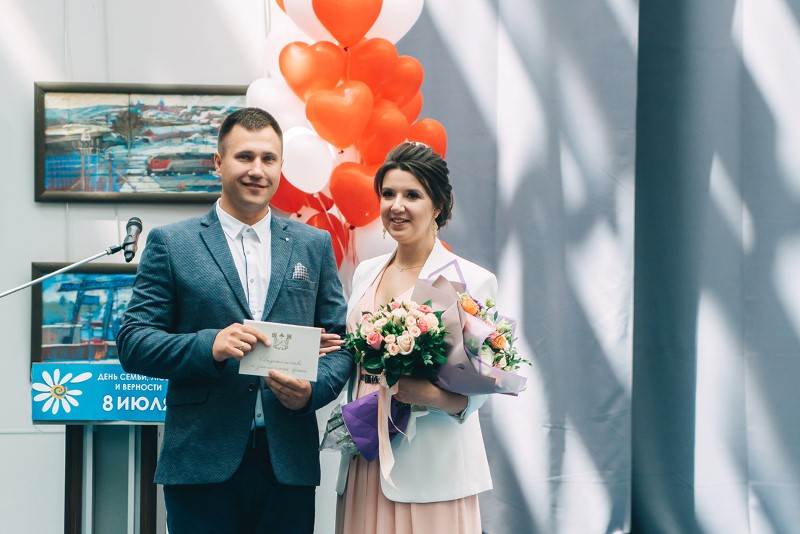 После своего выступления Алексей Островский вручил свидетельство о заключении брака молодой семье — Дмитрию и Екатерине Лавренковым, которые скрепили свой союз брачными узами в праздничный день — 8 июля 2019 года. Семейные пары, имеющие большой стаж супружеской жизни, поделились с молодоженами секретами семейного долголетия.