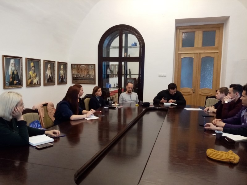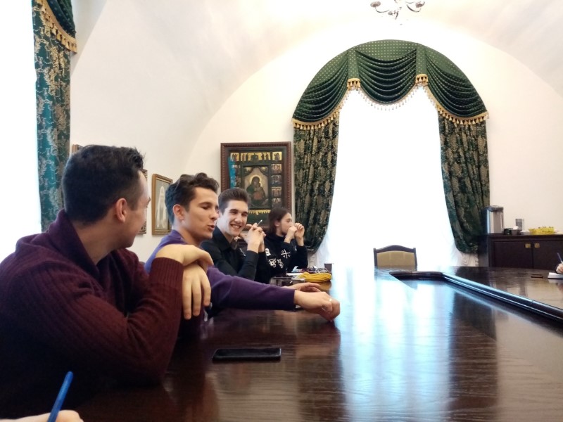 На встрече присутствовали: руководитель проекта протоиерей Валерий Рябоконь, куратор М.С. Жукова, фото- видеооператор проекта Д.В. Артеменко и студенты смоленских вузов-партнеров проекта.