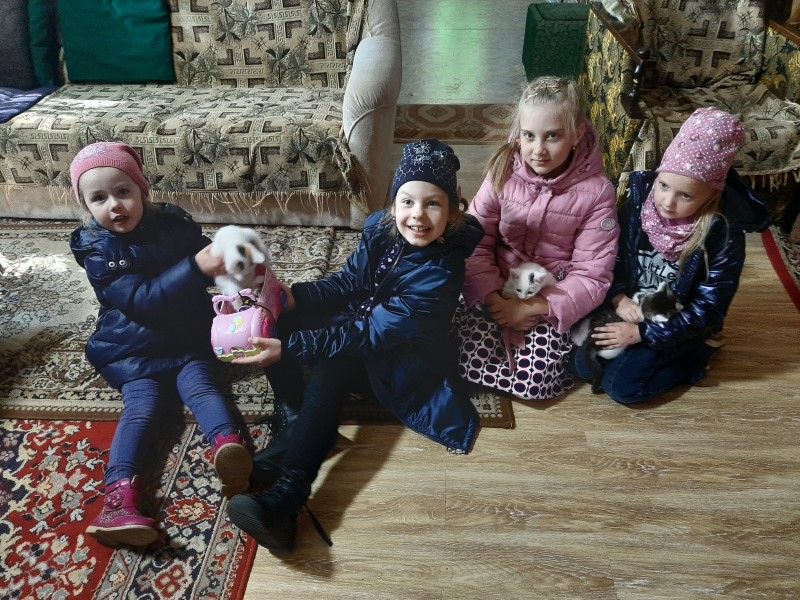 Гости обители помогали в трапезной готовить обед и угощения, а дети резвились с местными котятами.