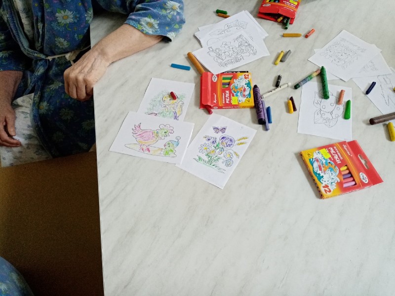 «Мы стараемся в каждый наш визит с бабушками и дедушками раскрашивать раскраски, потому что это замечательное занятие. Во-первых, это мелкая моторика, которая полезна всем, во-вторых, это несложно и всем доступно. Пожилые люди это делают с большим удовольствием. К сожалению, сейчас у нас раскраски заканчиваются. Мы будем очень рады, если кто-то сможет их пожертвовать. Можно распечатать на принтере и принести нам. Бабушкам очень нравится раскрашивать цветы, бабочек, животных, а дедушкам – машины, самолеты, лодки, то, что связано с техникой», – рассказала координатор направления помощи старикам в Гедеоновской больнице Ксения Леонкова.