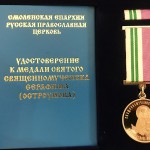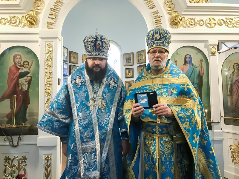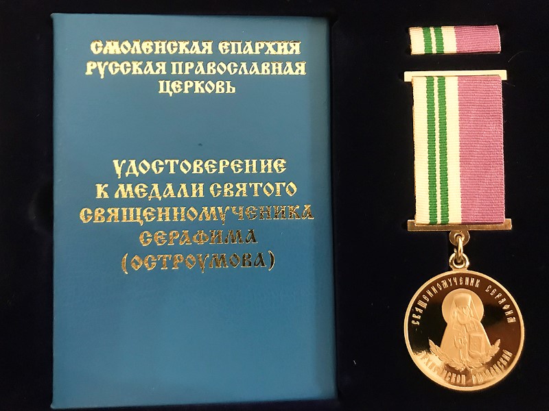 Настоятелю храма протоиерею Виктору Лютику Его Высокопреосвященство вручил одну из высших наград Смоленской епархии – медаль в честь святого священномученика Серафима (Остроумова), архиепископа Смоленского.