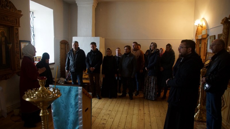Перед поездкой был совершен молебен о путешествующих в нижнем храме Святых Новомучеников, освященном в честь Происхождения Честных Древ Животворящего Креста Господня.