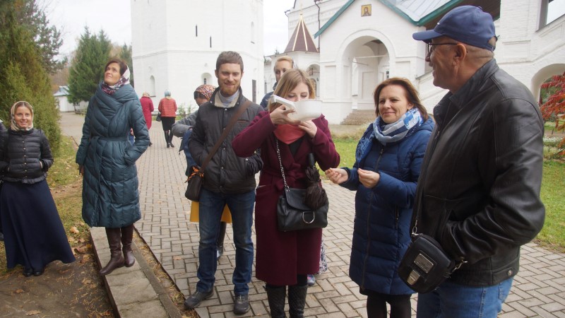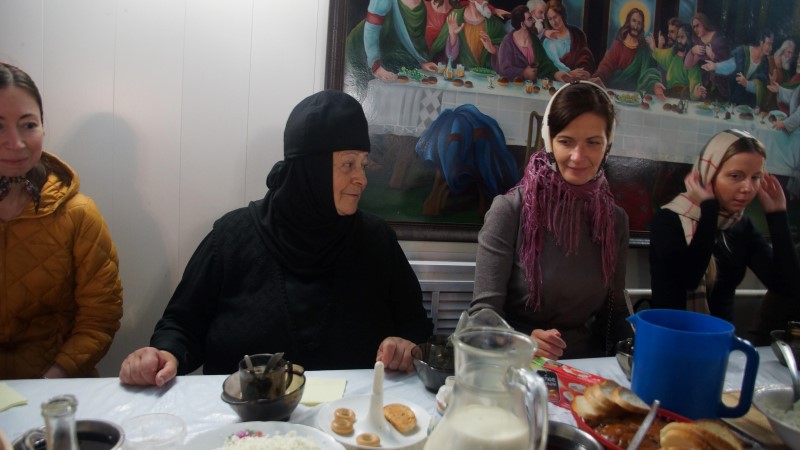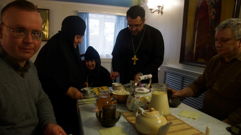 В Великомученика Димитрия Солунского женском монастыре паломников встретила настоятельница – игумения Михаила (Коровина). Душевный и радушный прием матушки Михаилы, экскурсия по территории монастыря, знакомство с хозяйством, угощение сладостями, свежим молоком, творогом и вареньем собственного производства позволили окунуться в семейную атмосферу обители, пронизанную любовью.