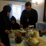 Матушка игумения ответила на вопросы паломников о жизни и быте в монастыре. Никого не смогло оставить равнодушным то душевное тепло, которым окружили паломников насельницы обители.
