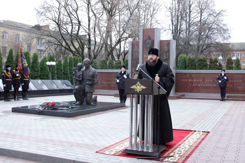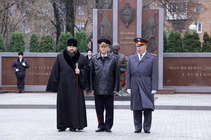 После приветственных слов была объявлена минута молчания в память о сотрудниках органов внутренних дел Смоленской области, отдавших свои жизни при исполнении служебного долга, возложены цветы и венки мемориалу «Солдатам правопорядка, погибшим при исполнении служебного долга».