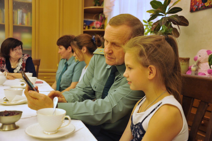 Но главным все-таки для девочек является дружеское общение. Вот и в эту встречу за чашкой чая они увлеченно рассказывали об учебе, летнем отдыхе, старшие поделились планами на будущее. Девочки показали свои рисунки, поделки, а одну из них заранее приготовили для своих шефов и сделали надпись с теплыми и душевными словами.
