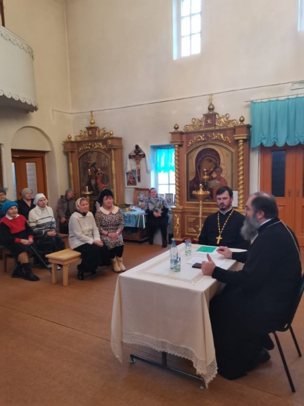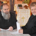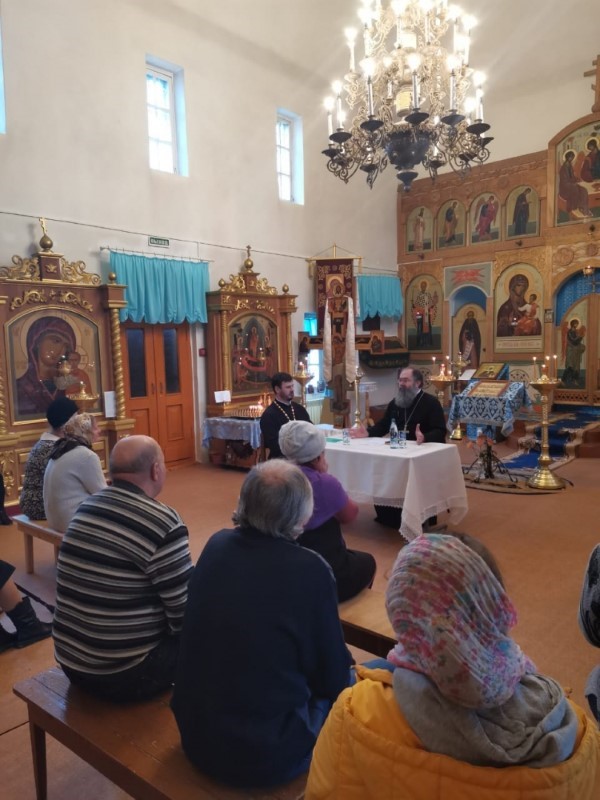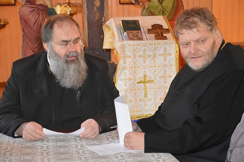 После протоиерей Василий отправился в храм Рождества Пресвятой Богородицы поселка Озерный, где с настоятелем прихода иереем Александром Тереховым и члена приходского совета также обсудил вопросы повестки дня.