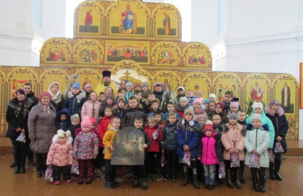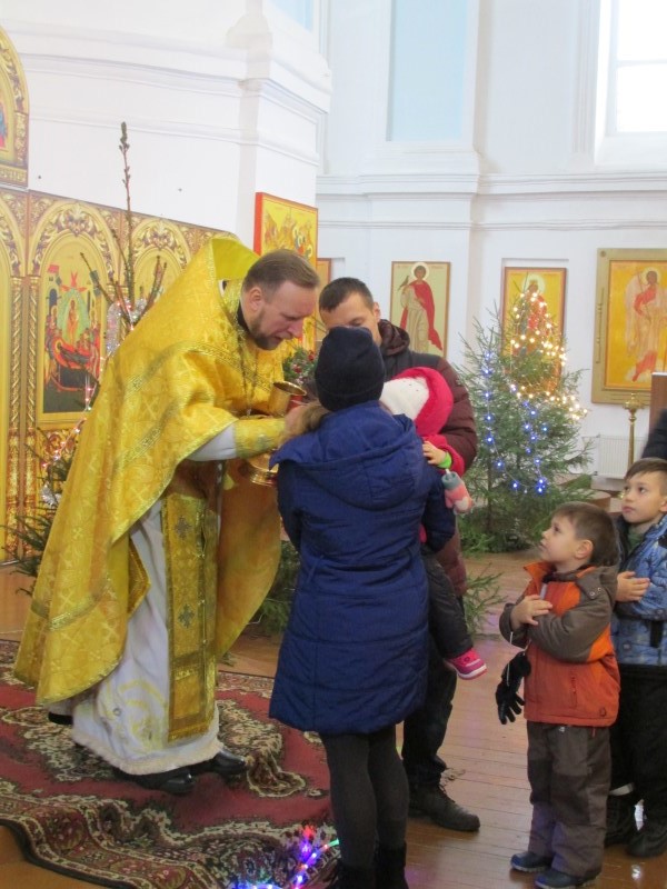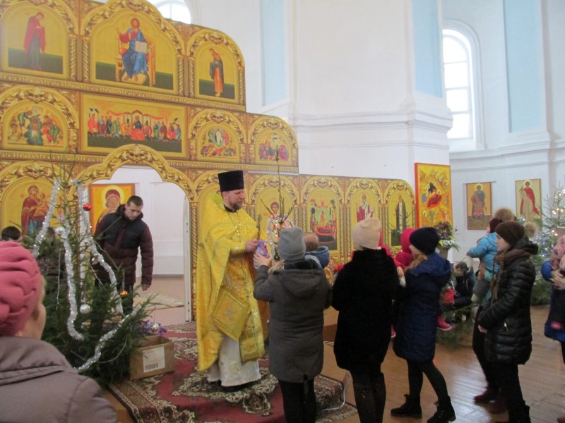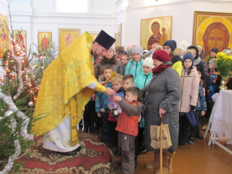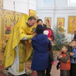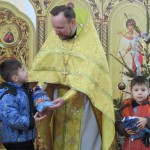 Все причастились Святых Христовых Таин и по окончании богослужения получили в подарок сладкие гостинцы.