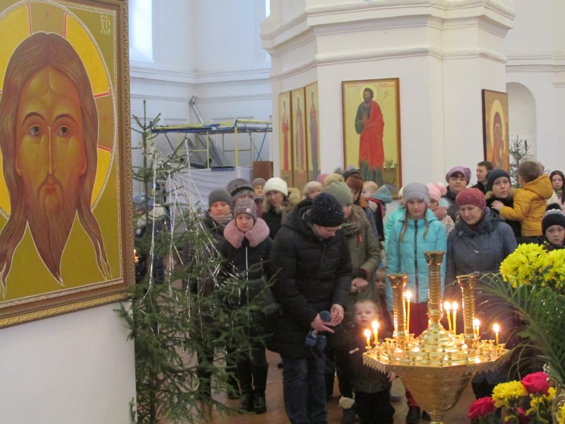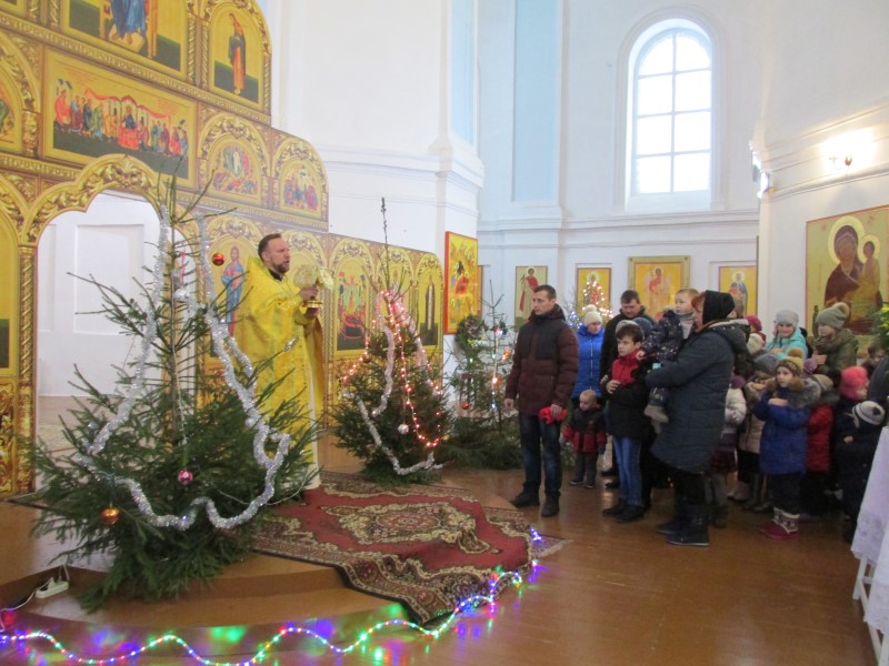 На детские богослужения принято всеми семьями приходить в храм, чтобы подрастающее поколение с самого раннего возраста приобщалось к светлому радостному празднику и прославляло родившегося Господа. Атмосфера этого богослужения очень теплая и молитвенная. Молящихся объединяет взаимная любовь и молитва друг за друга.