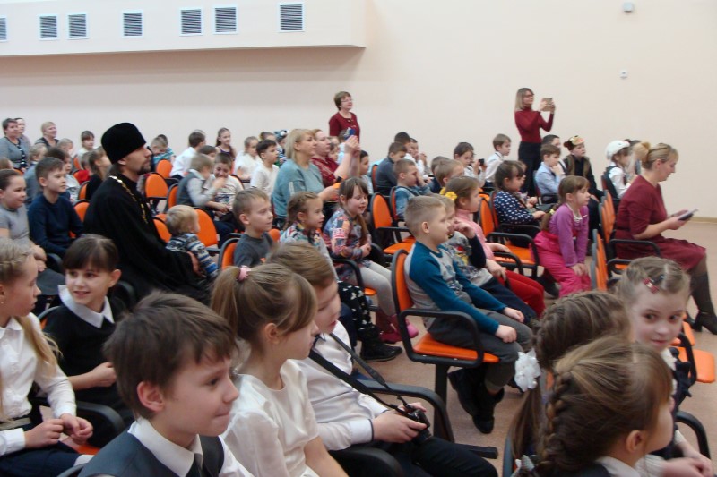 В актовом зале собрались педагоги школы, учащиеся начальных классов, изучающие основы православной культуры, родители детей. Гостями праздника стали настоятель храма Кирилла и Мефодия иерей Владимир Баринов, а также воспитанники детского сада №1 г. Велижа.