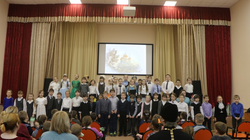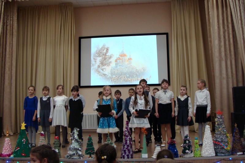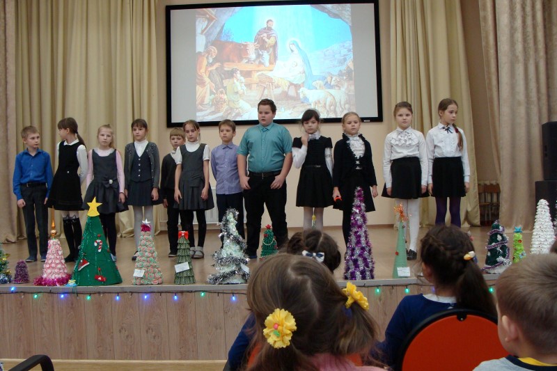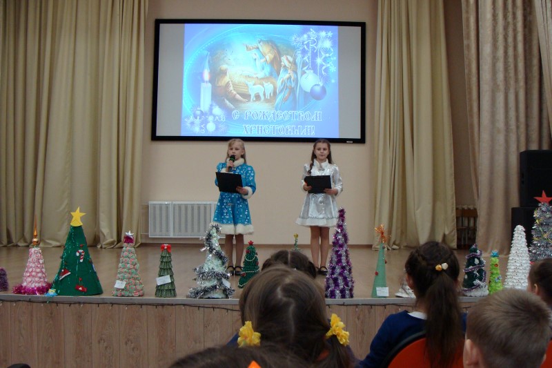 Начался праздник выступлением воспитанников хореографического кружка, которые исполнили рождественский вальс. Детей порадовали инсценировки, посвященные рождению Бога на земле, и делам любви и милосердия, которые совершаются в Рождество. Театральные миниатюры чередовалось рождественскими песнопениями в исполнении учеников начальных классов. В представление были вовлечены и зрители,которым предлагалось ответить на вопросы о национальной культуре и традициях. Самым ярким номером программы стало хоровое исполнении песни о Рождестве Христовом учениками сразу трех классов.