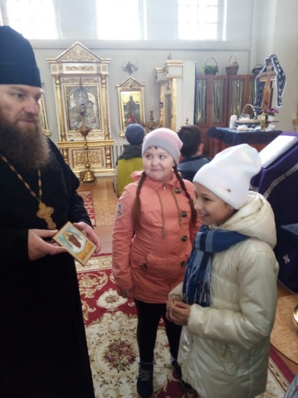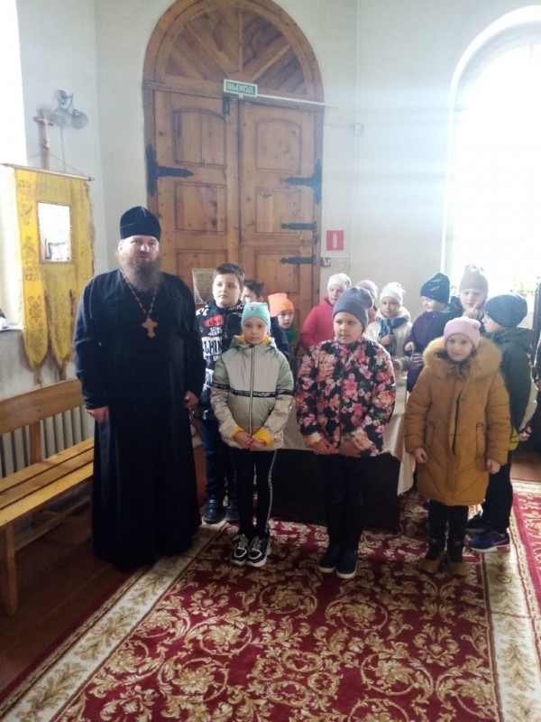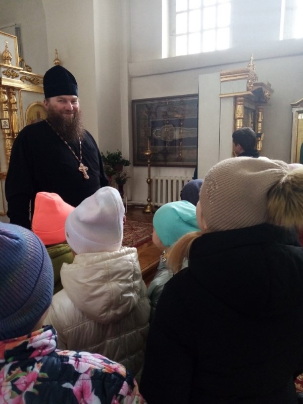В церкви учащихся встречал клирик храма протоиерей Валентин Бабич. Священник рассказывал об истории храма, наполненной трагическими и радостными моментами. Отмечал особенности архитектуры. Знакомил с древними иконами, многие из которых оказались в храме при интересных обстоятельствах. Во время экскурсии протоиерей Валентин отвечал на интересующие ребят вопросы. Общение не закончилось запланированной экскурсией, а продолжалось за чаепитием.