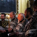 Его Высокопреосвященству сослужили настоятель Свято-Успенского собора, секретарь Смоленской епархии иерей Владислав Баган, председатель Церковного суда Смоленской епархии протоиерей Михаил Горовой, помощник Управляющего Смоленской епархии иерей Лев Гарин, клирики Свято-Успенского кафедрального собора.
