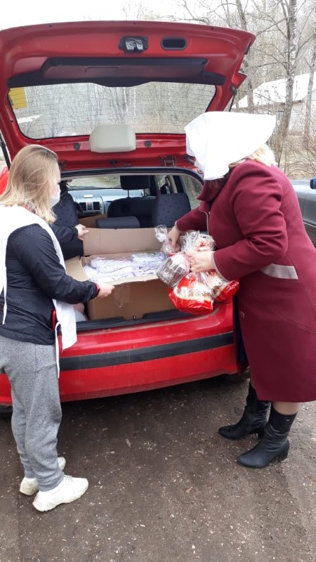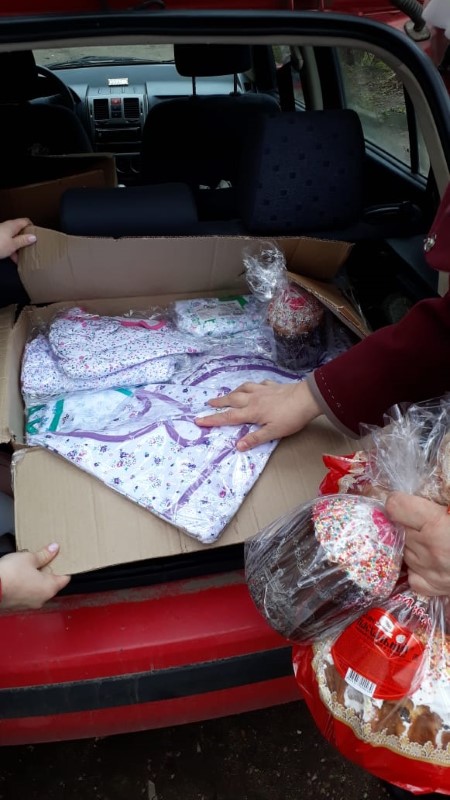 В Светлое Христово Воскресение добровольцы передали для подопечных собранные вещи, а также куличи. В условиях карантина передача груза происходила за территорией учреждения.