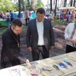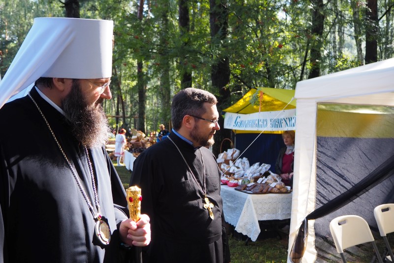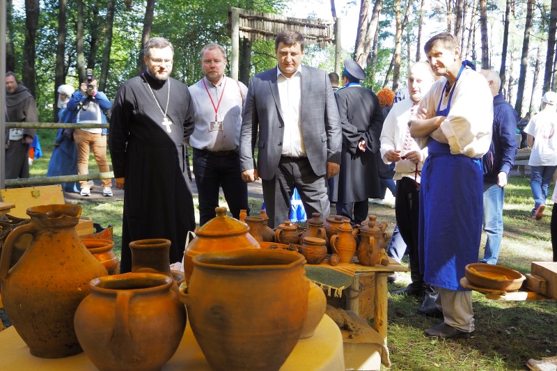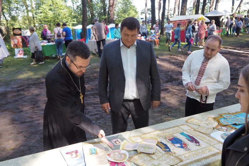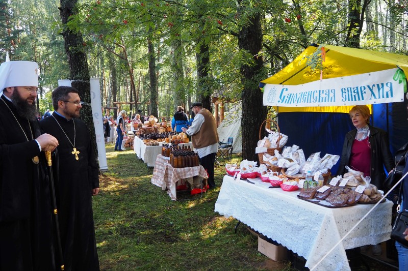 После церемонии открытия руководитель епархиального отдела по взаимоотношениям с общество и СМИ протоиерей Валерий Рябоконь провел для почетных гостей экскурсию и познакомил их с работой фестивальных площадок, представляющих Смоленскую епархию.