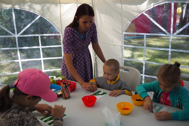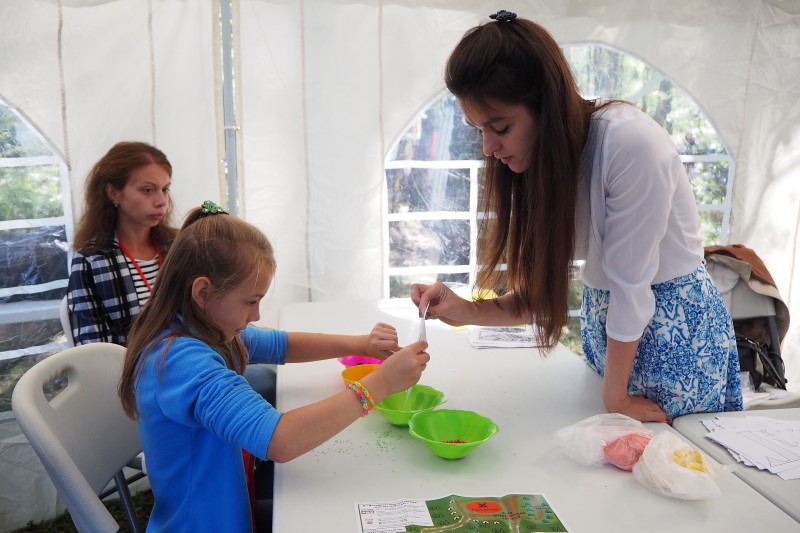 Внимание юных и взрослых посетителей фестиваля привлекли мастер-классы по раскрашиванию славянской буквицы, русскому лицевому шитью, которые проводят сотрудники епархиального отдела по работе с молодежью и студенты Центра подготовки церковных специалистов.