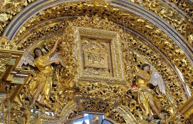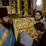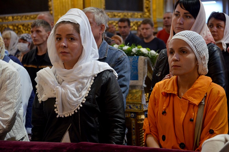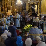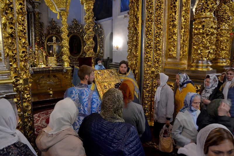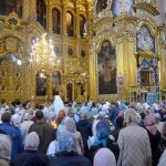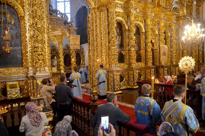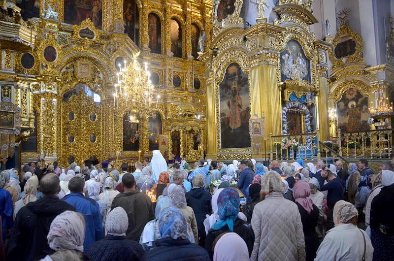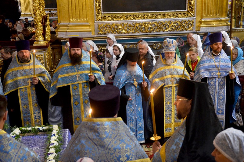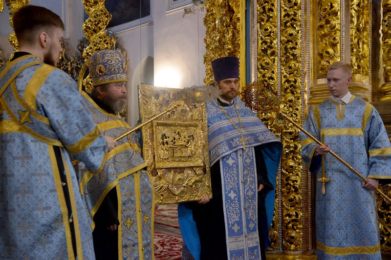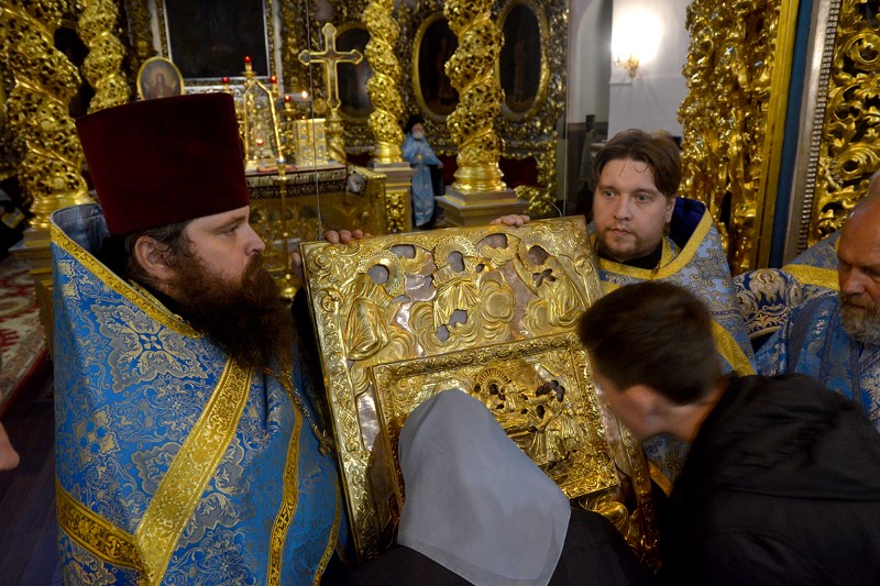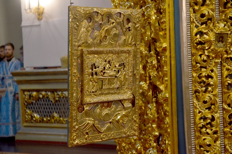 По традиции для поклонения верующих была спущена святыня главного храма Смоленска – надвратная икона Успения Пресвятой Богородицы с частицей Ризы Матери Божией. Всего один раз в год, 27 августа, во время всенощного бдения, святой образ опускают вниз, чтобы верующие могли с благоговением и молитвой приложиться к иконе.