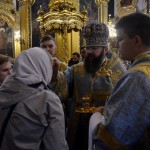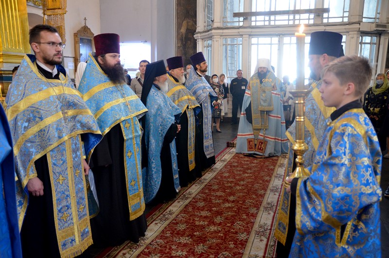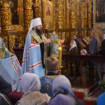 После чтения Святого Евангелия Высокопреосвященнейший Исидор обратился к участникам богослужения с архипастырским словом, в котором поздравил с двунадесятым праздником.