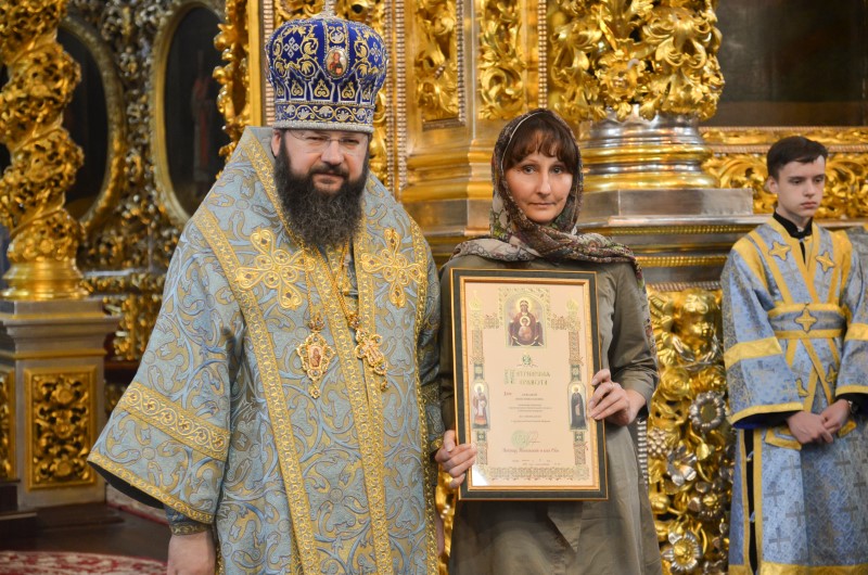 По окончании торжественного богослужения митрополит Исидор адресовал слова поздравления с праздником Успения Пресвятой Богородицы всем молящимся, а затем вручил Патриаршие награды. Древлехранитель Смоленской епархии Александр Александрович Дубровский был награжден нагрудным знаком «Храмостроитель», а сотрудники епархиального архитектурного отдела — Патриаршими грамотами.