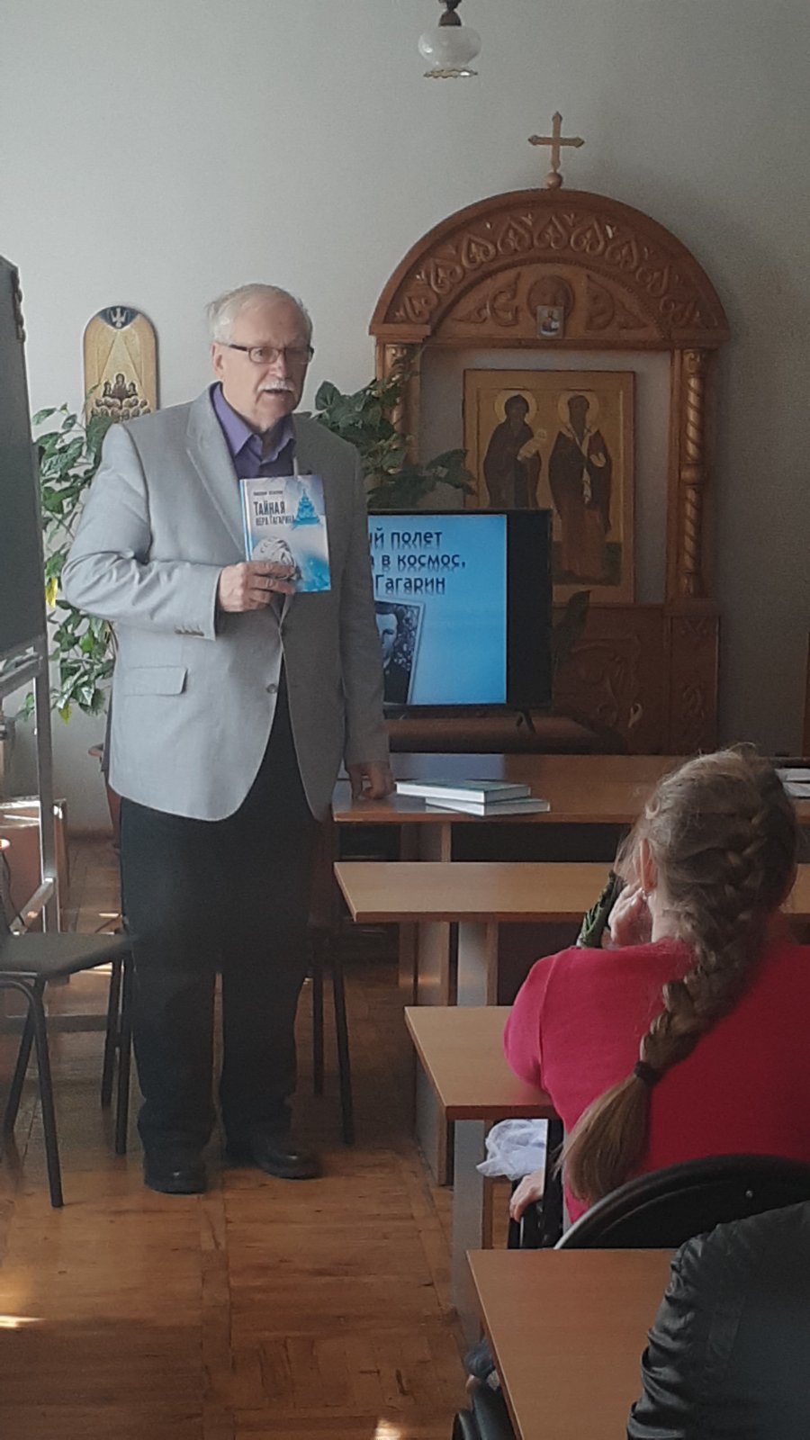 Участниками встречи стали не только дети, но и взрослые. В беседе принял участие член Союза писателей России, председатель Смоленского областного объединения православных писателей Николай Николаевич Кеженов, автор книги «Тайная вера Гагарина».
