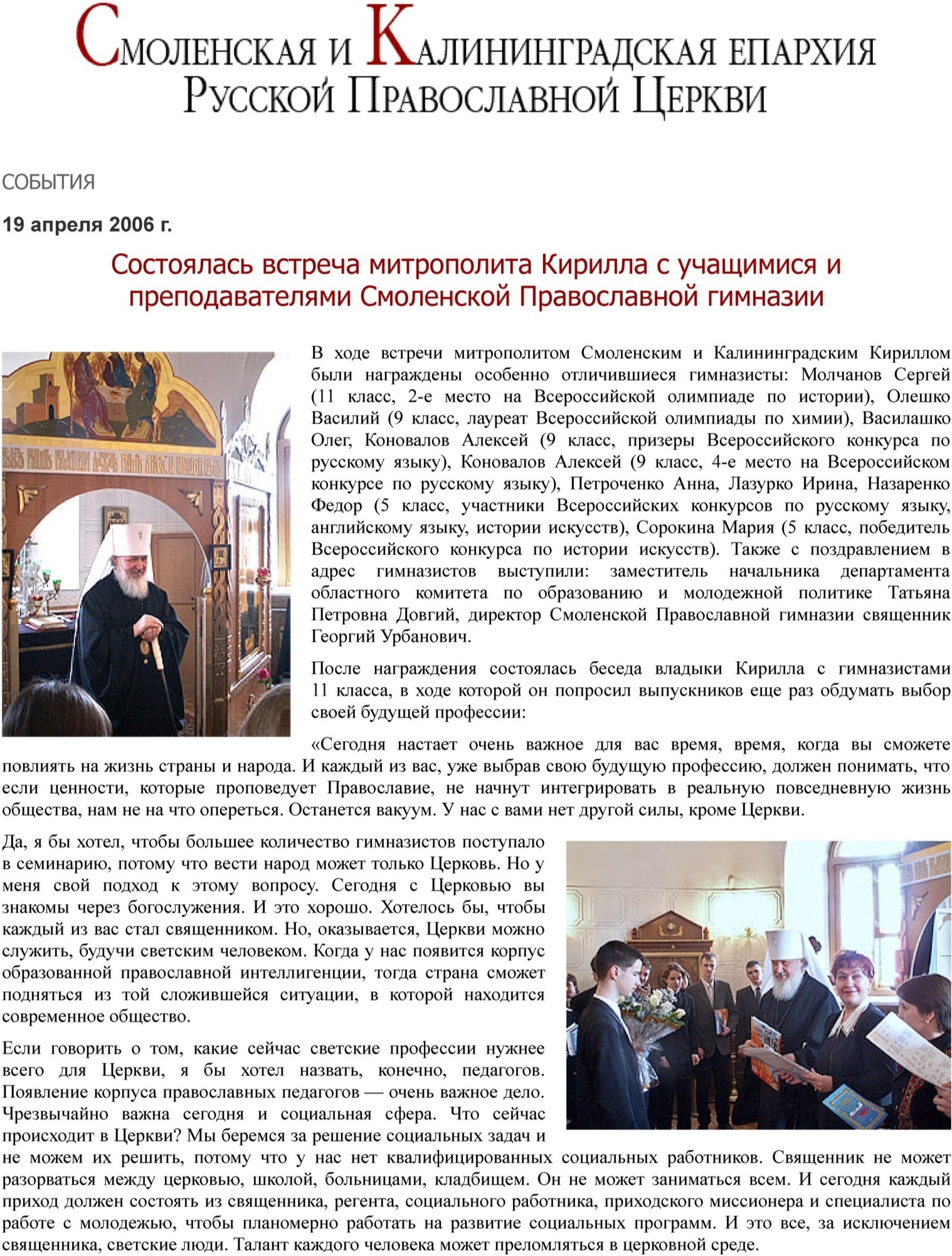 19 апреля: этот день в истории служения на Смоленщине Святейшего Патриарха Кирилла