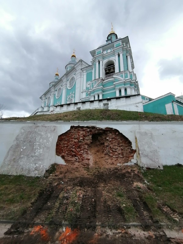 Ряд смоленских, в том числе государственных, средств массовой информации опубликовали новостные материалы, в которых содержится недостоверная информация о том, что якобы «в областном центре разрушилась часть стены Успенского собора».