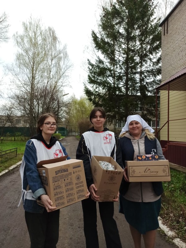 В детское отделение Смоленского областного психоневрологического диспансера добровольцы вместе с координатором службы Светланой Бессарабовой отвезли печенье и канцелярские принадлежности, собранные учениками Средней школы №29 города Смоленска.