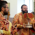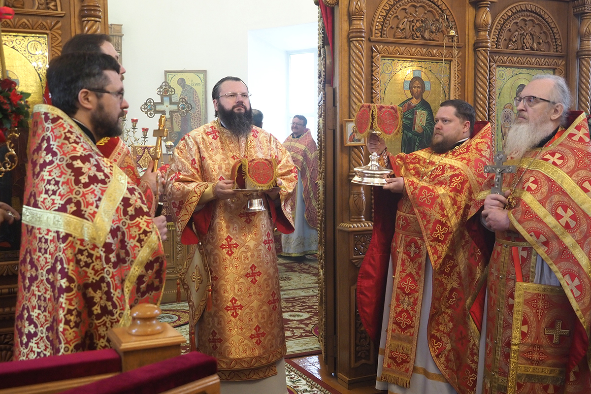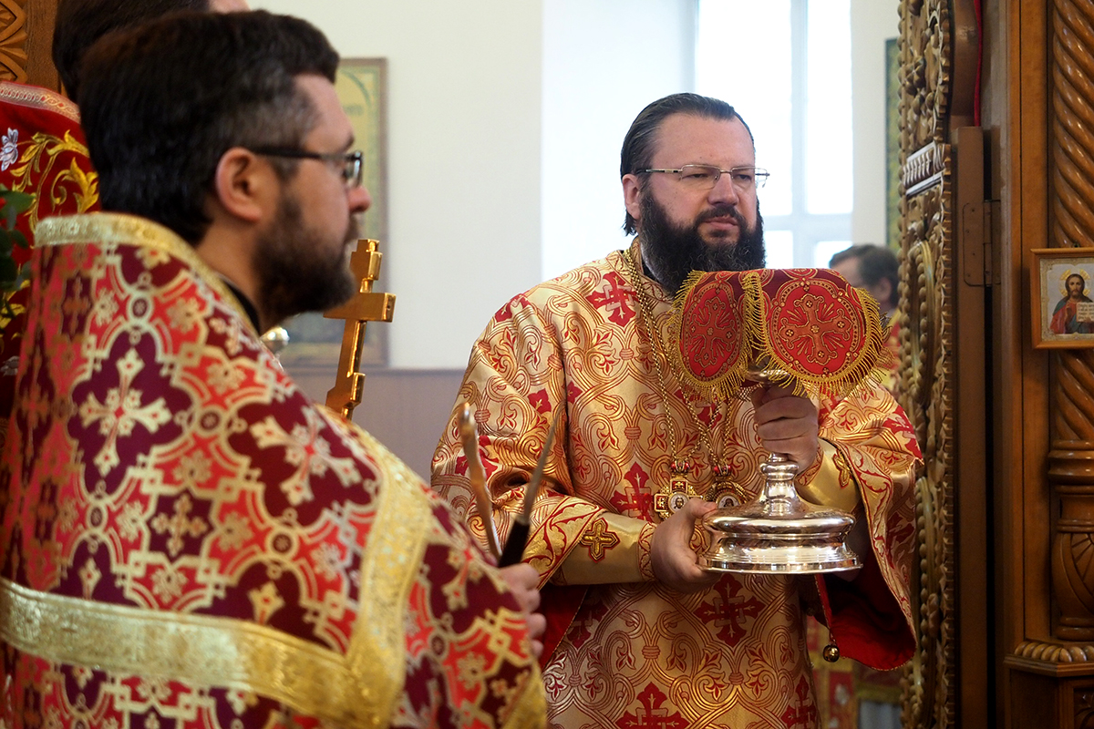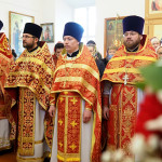 Его Высокопреосвященству сослужили: благочинный Петропавловского церковного округа, руководитель отдела Смоленской епархии по церковной благотворительности и социальному служению иерей, настоятель храма Верхне-Георгиевского храма Дионисий Давыдов; благочинный Борисоглебского церковного округа, руководитель епархиального Отдела по физической культуре и спорту протоиерей Андрей Мельничук; руководитель епархиального Отдела по взаимоотношениям Церкви с обществом и СМИ протоиерей Валерий Рябоконь; руководитель Отдела Смоленской епархии по религиозному образованию и катехизации иерей Александр Коржаков; настоятель храма в честь Державной иконы Божией Матери протоиерей Игорь Буршта, настоятель храма в честь бессребреников Космы и Дамиана деревни Жуково иерей Геннадий Кургузов; настоятель храма в честь Всех святых, в земле Смоленской просиявших города Смоленска иерей Андрей Попов; настоятель храма в честь Успения Пресвятой Богородицы в поселке Богородицкое иерей Павел Моисеенков.