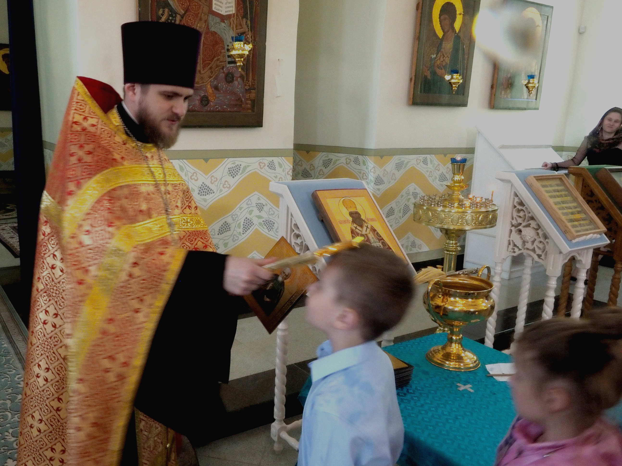 После молебна священнослужитель благословил ребят, родителей и воспитателей, окропив их святой водой и подарив каждому в знак благословения икону преподобного Сергия Радонежского.