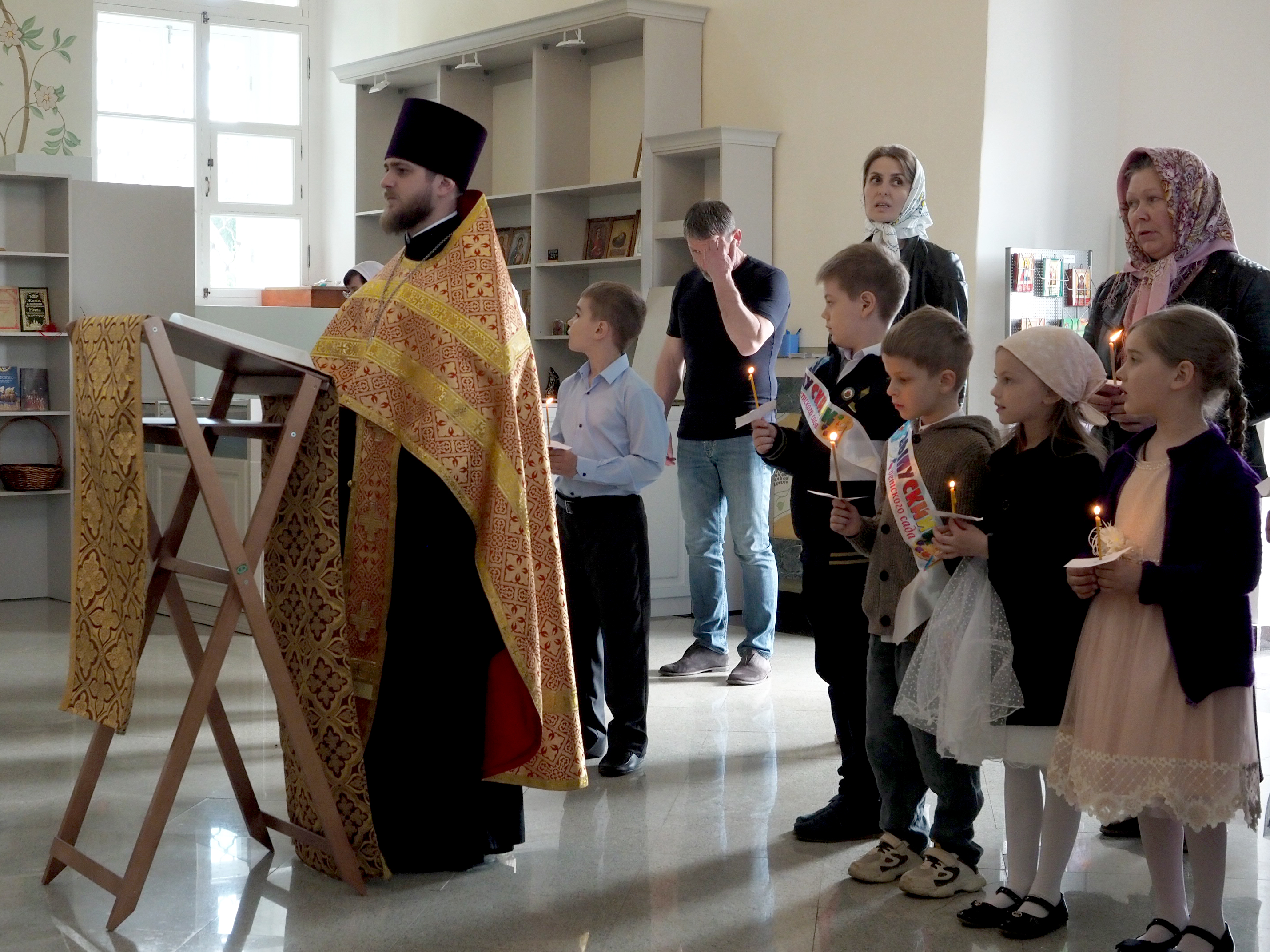 Молебное пение совершил духовник Православного детского сада №1, помощник Управляющего Смоленской епархией, настоятель Благовещенского храма иерей Лев Гарин.