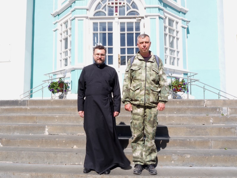 В Свято-Успенском кафедральном соборе руководитель епархиального отдела по взаимодействию Церкви с обществом и СМИ протоиерей Валерий Рябоконь и заместитель руководителя Отдела Смоленской епархии по работе с молодежью иерей Максим Костюков совершили благодарственный молебен об участниках состоявшегося пешего перехода «Смоленский край – земля Героев», пообщались с главным инициатором-участником пути — Максимом Кустовым и преподали Божие благословение на продолжение благого проекта.