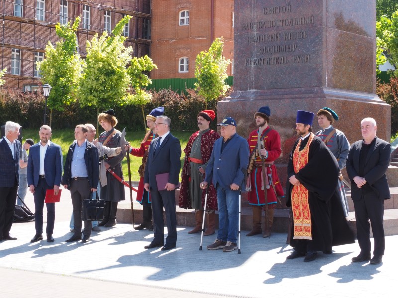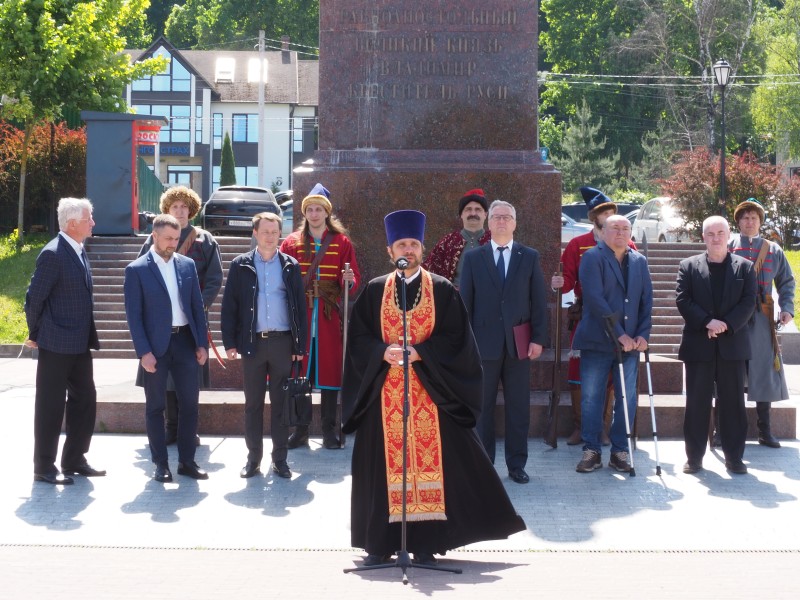 В завершение все участники возложили цветы к памятнику князя Владимира.