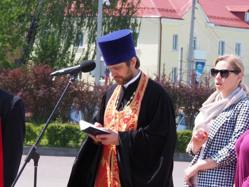 Иерей Владислав Баган поприветствовал смолян и совершил литию по погибшим защитникам Святой Руси.