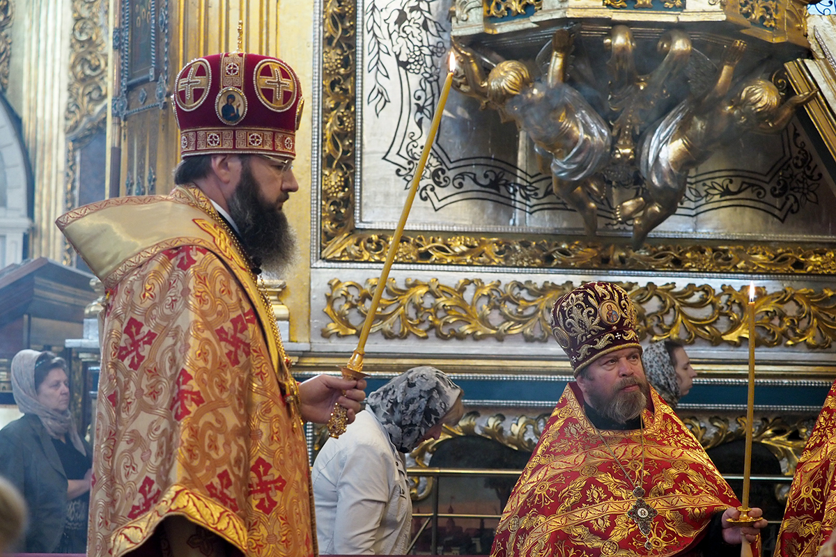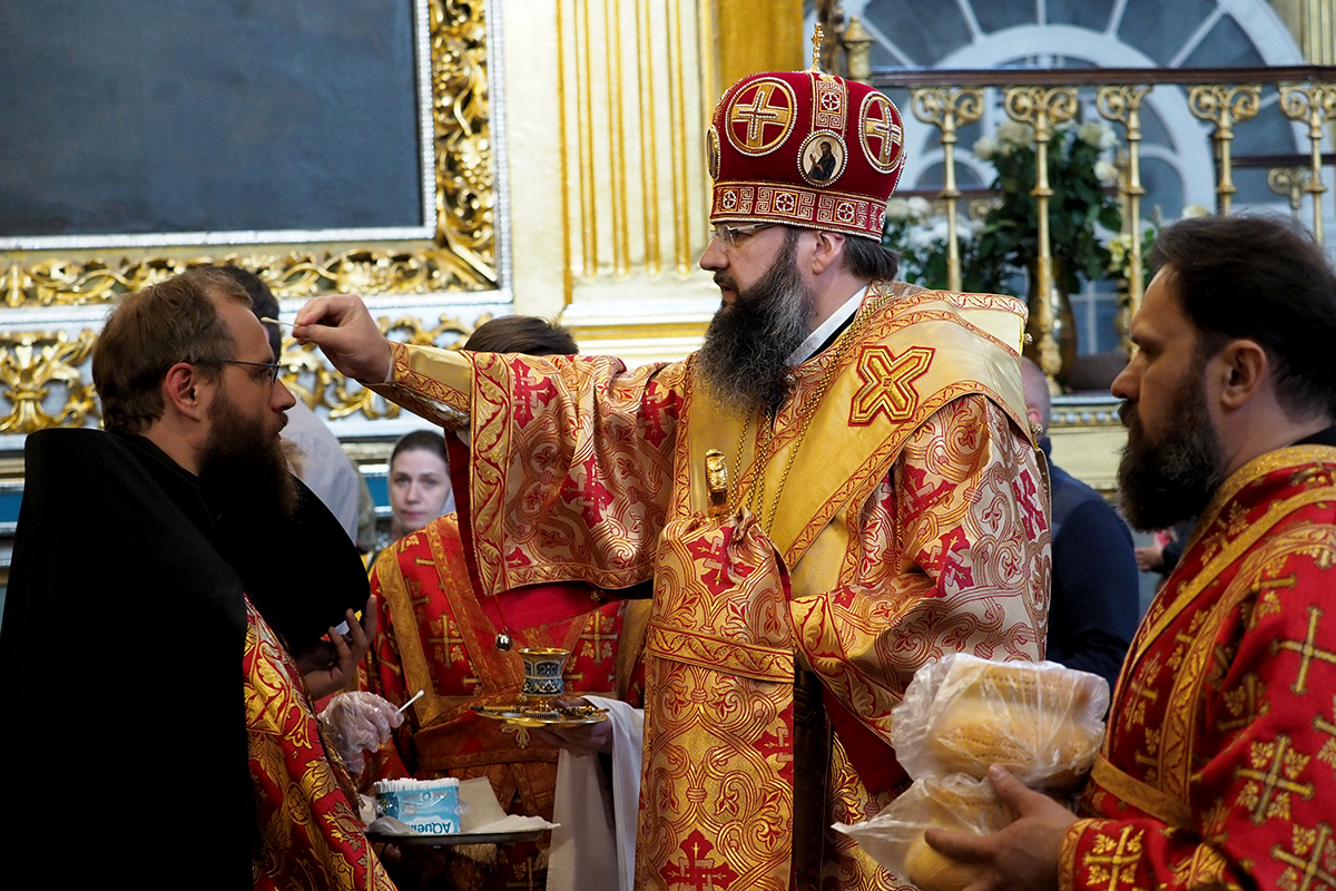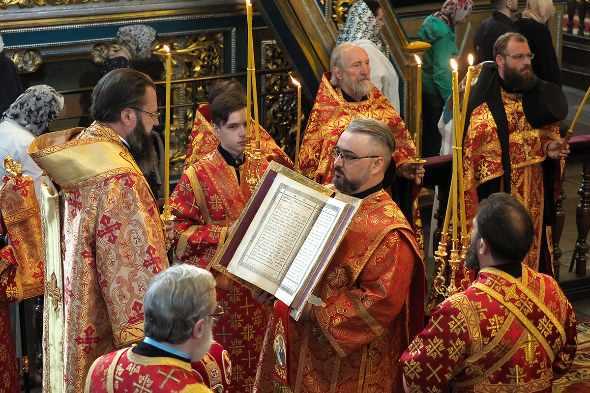 Высокопреосвященному архипастырю сослужили настоятель кафедрального храма, секретарь Управления Смоленской епархии иерей Владислав Баган, духовенство и клирики собора.