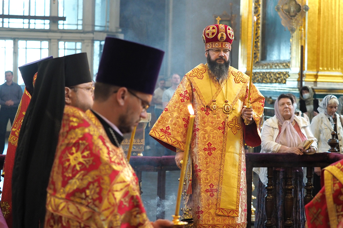 В субботу 5 июня 2021 года, накануне Недели 6-й по Пасхе, митрополит Смоленский и Дорогобужский Исидор возглавил Всенощное бдение в Свято-Успенском кафедральном соборе города Смоленска.