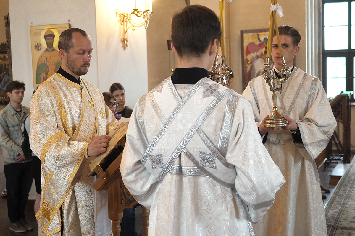 Песнопения Божественной литургии исполнил приходской хор храма святых Новомучеников и Исповедников Церкви Русской г. Смоленска.