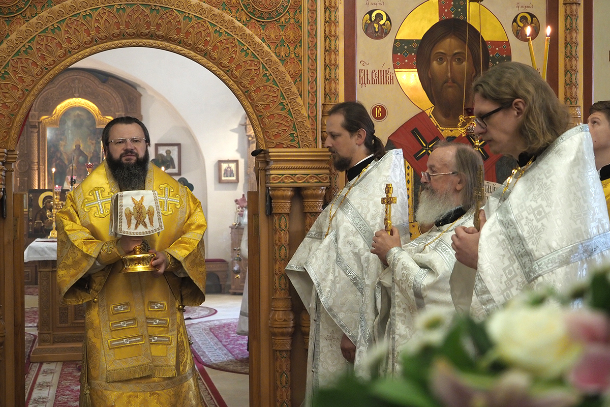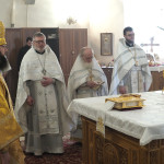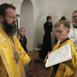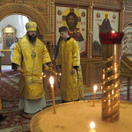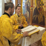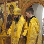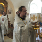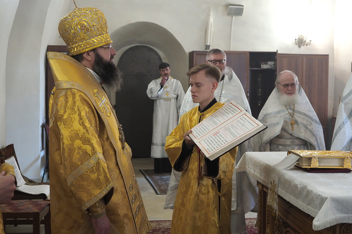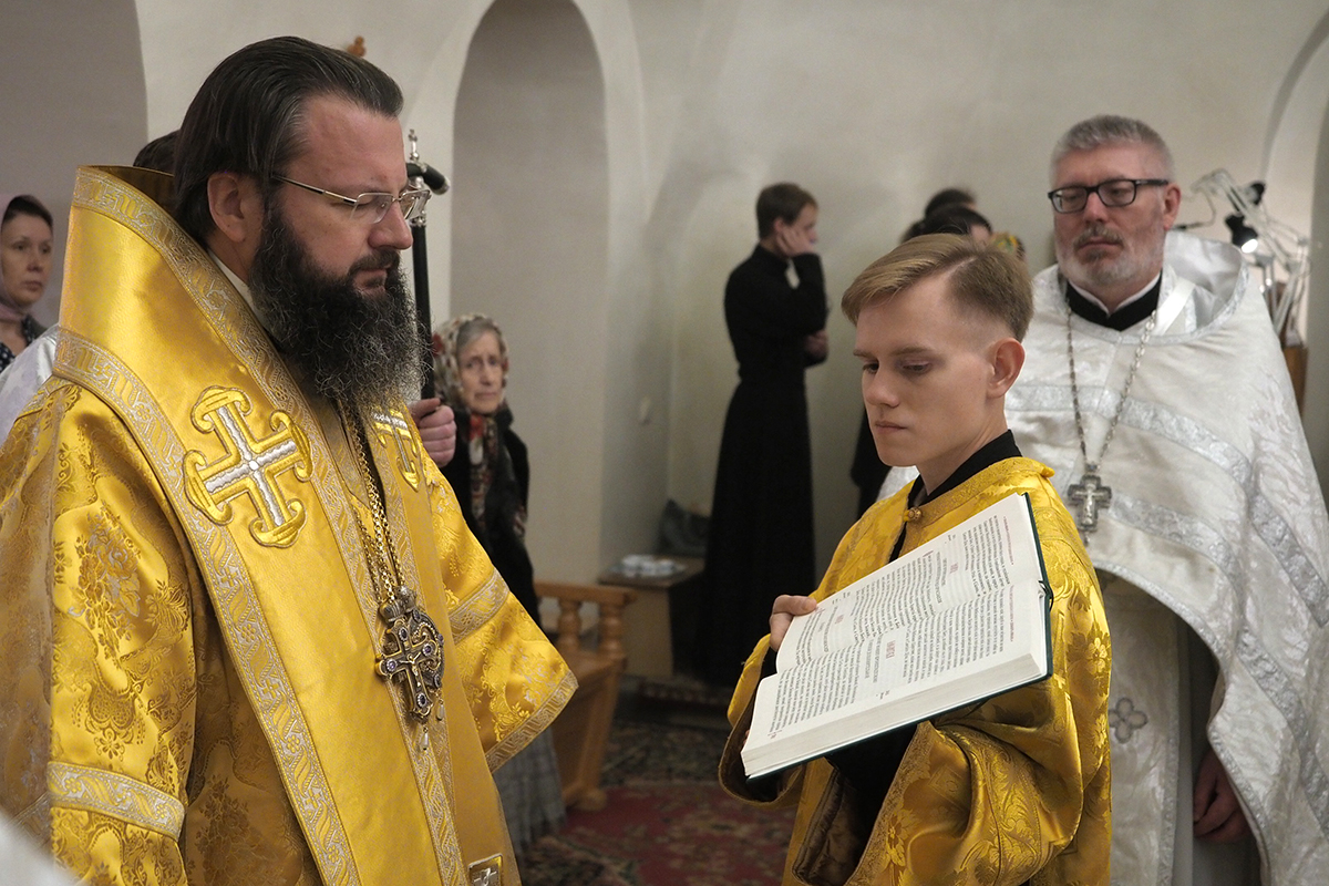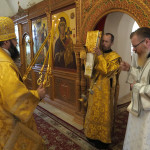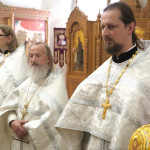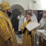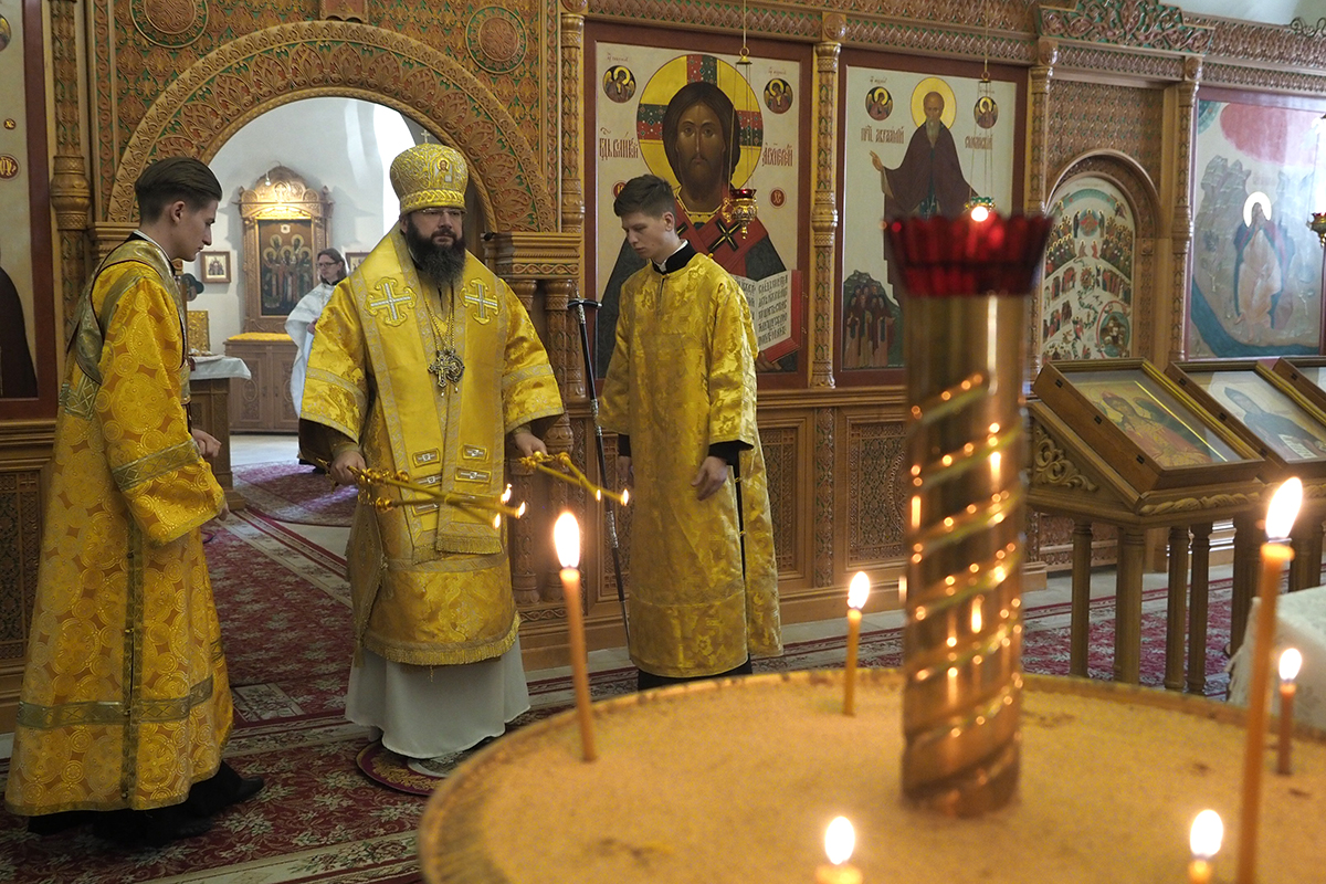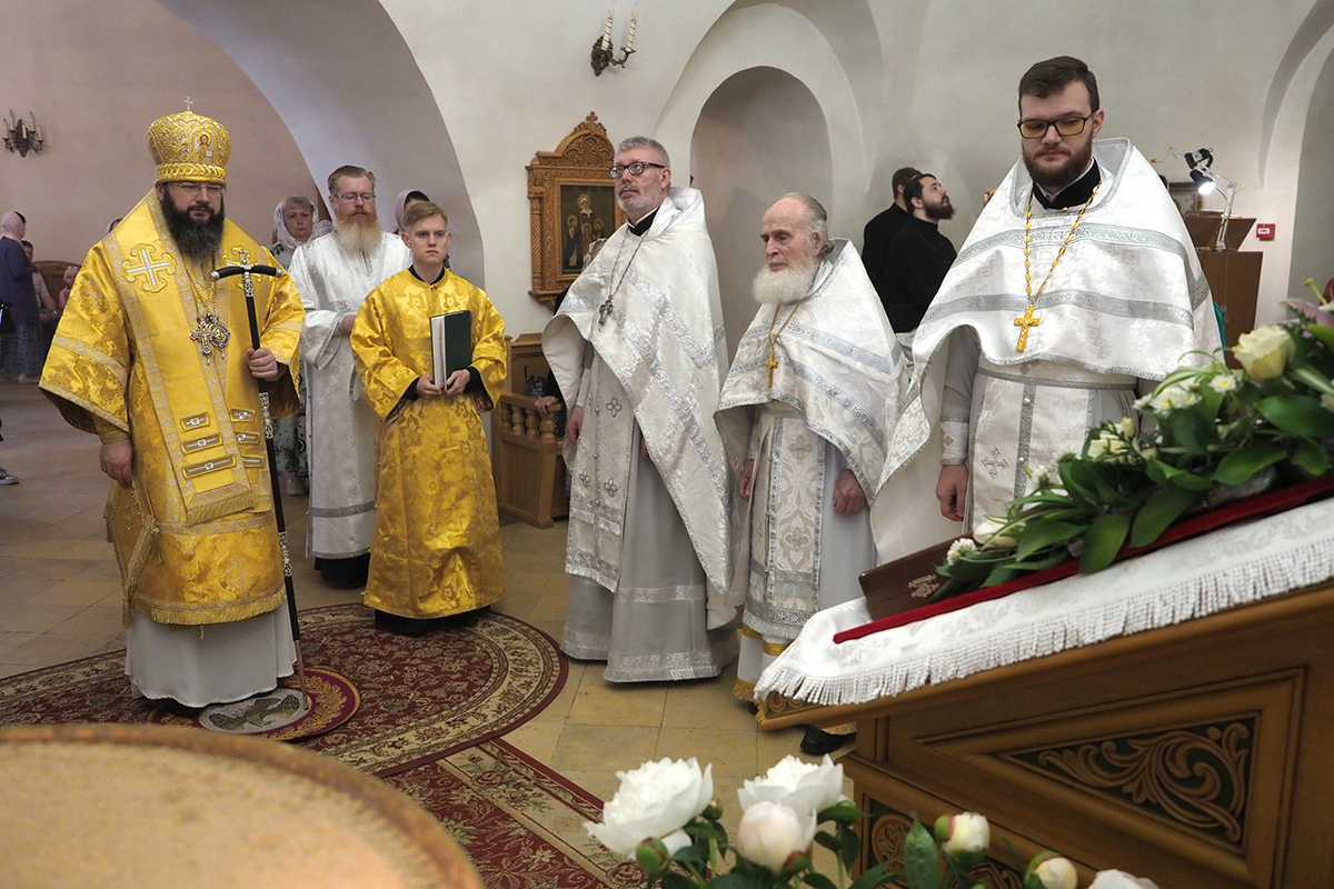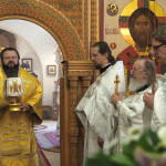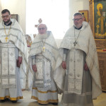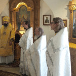За Божественной литургией Его Высокопреосвященству сослужили наместник святой обители игумен Николай (Золотов), Председатель Церковного суда Смоленской епархии игумен Тарасий (Ланге), заведующий заочным отделением СПДС иеромонах Лука (Лисовский), исполняющий обязанности помощника ректора по воспитательной работе иерей Димитрий Гамиловский, братия и духовенство монастыря.