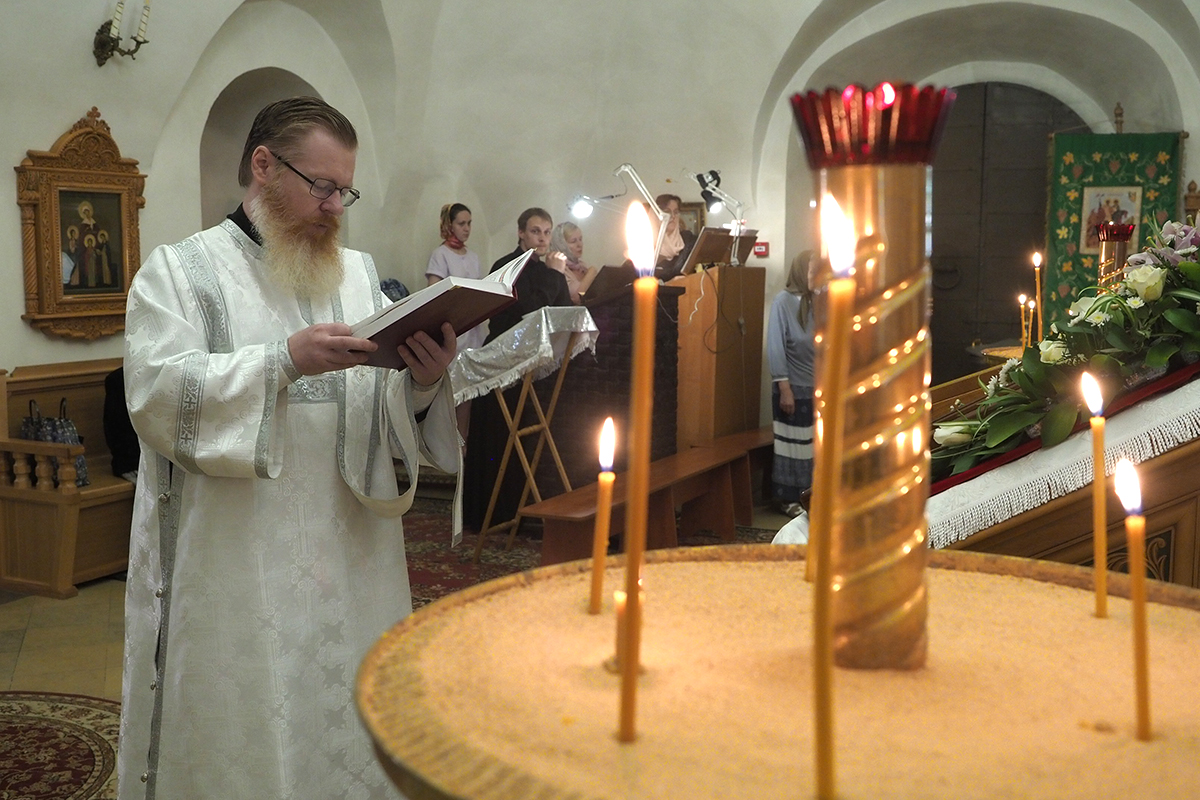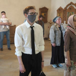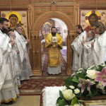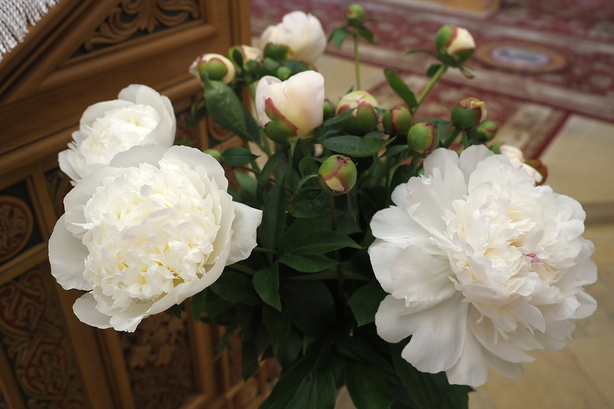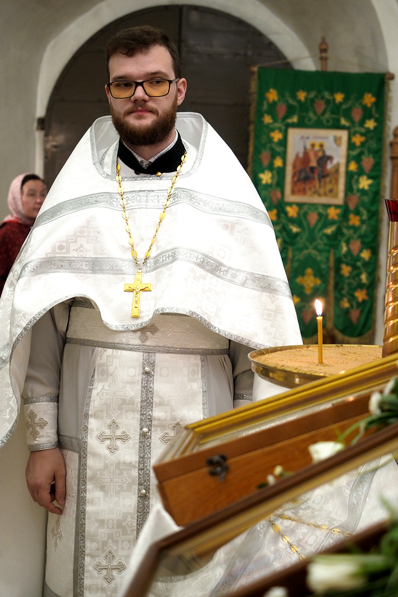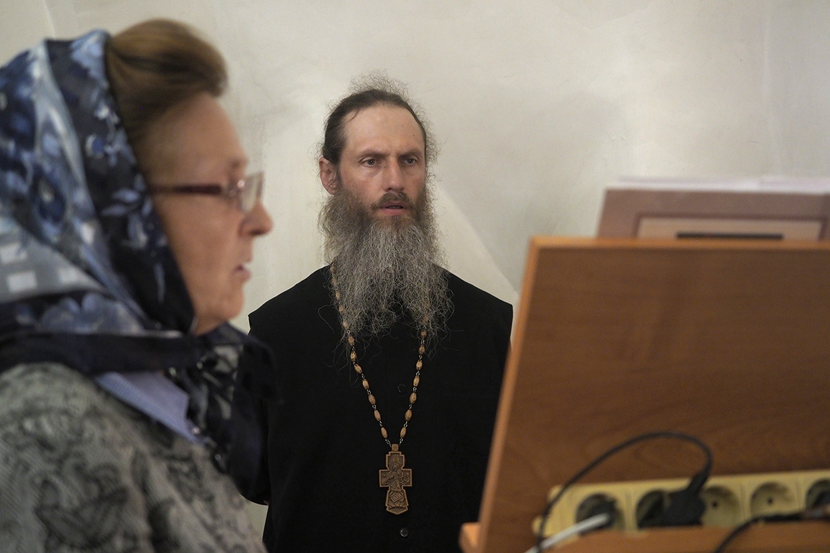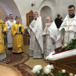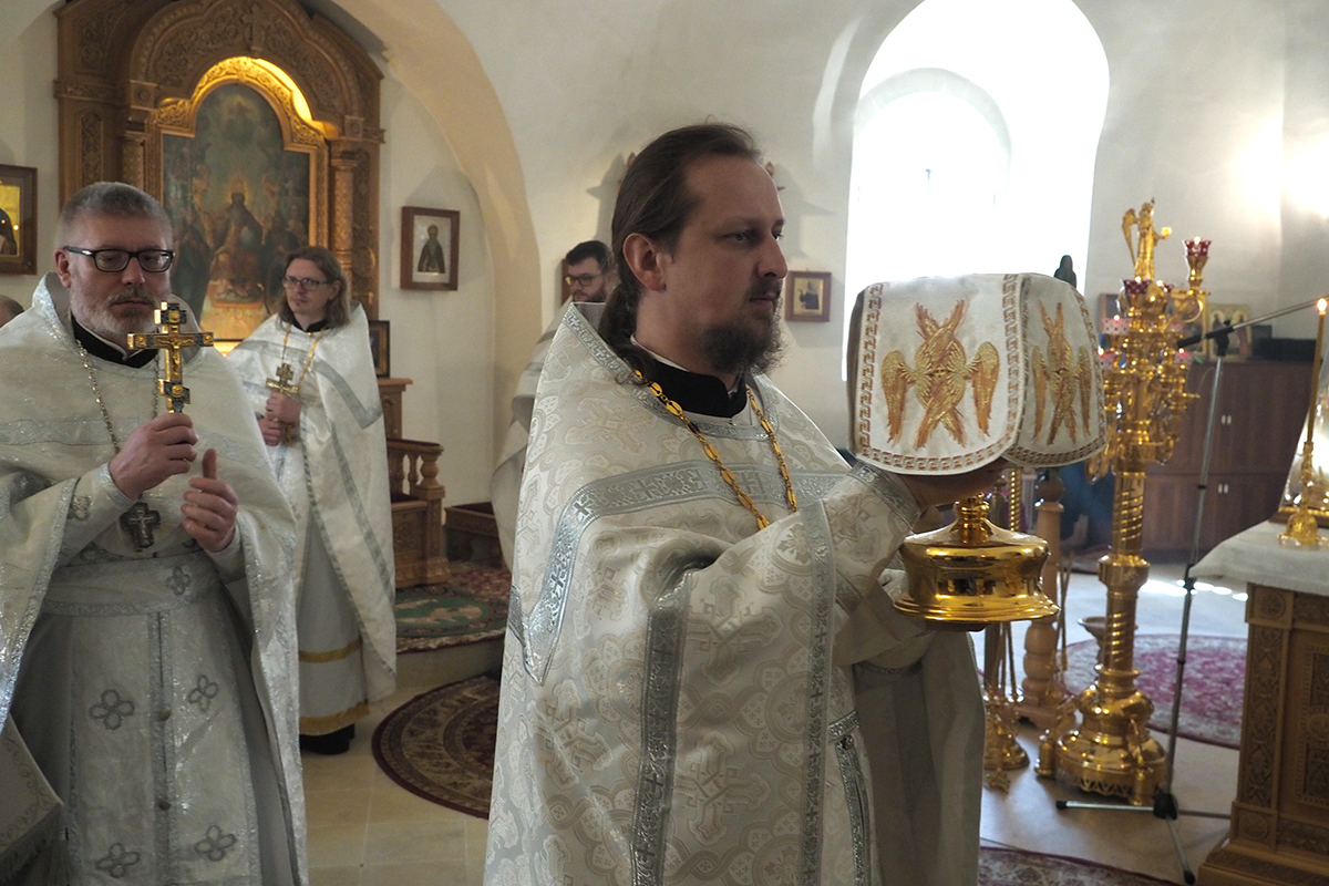 За Божественной литургией Его Высокопреосвященству сослужили наместник святой обители игумен Николай (Золотов), Председатель Церковного суда Смоленской епархии игумен Тарасий (Ланге), заведующий заочным отделением СПДС иеромонах Лука (Лисовский), исполняющий обязанности помощника ректора по воспитательной работе иерей Димитрий Гамиловский, братия и духовенство монастыря.