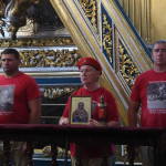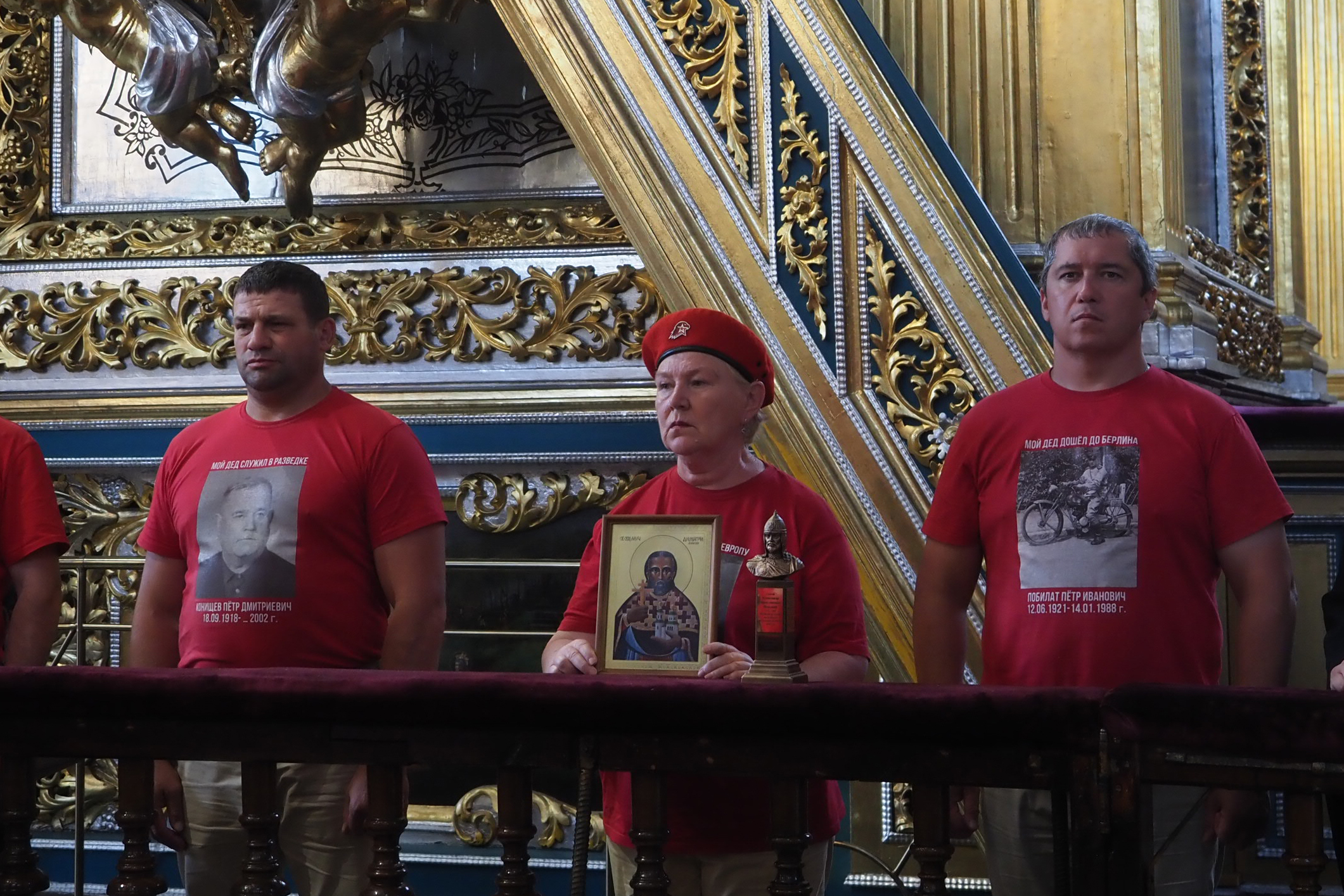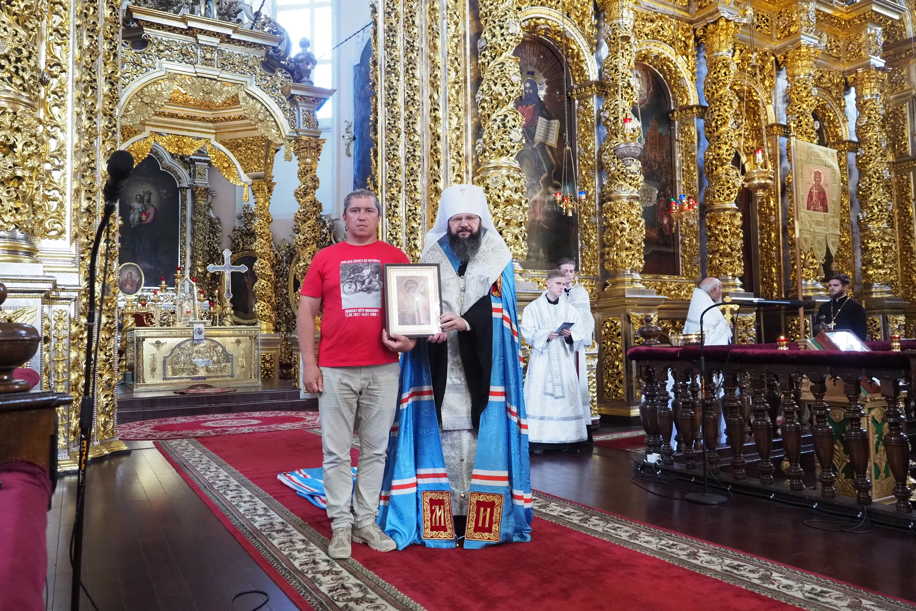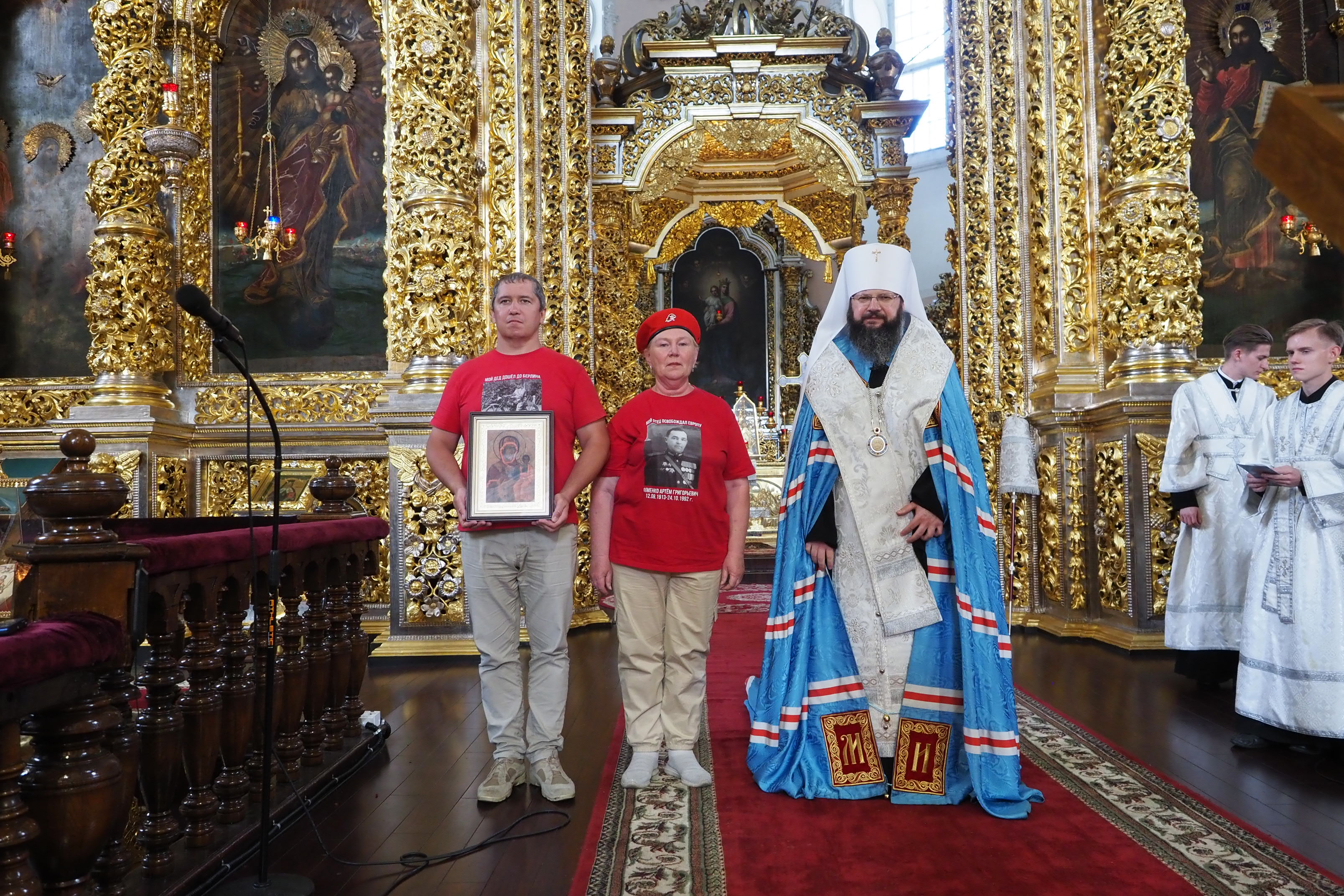 Совершив благодарственный молебен, поименно упомянув в молитве каждого участника автомарша, митрополит Исидор обратился к членам патриотической экспедиции. В знак благословения архипастырь преподнес в дар красноярским гостям икону Божией Матери «Одигитрия» , с теплом отметив, что первые 20 лет он тоже жил и учился в Красноярске: