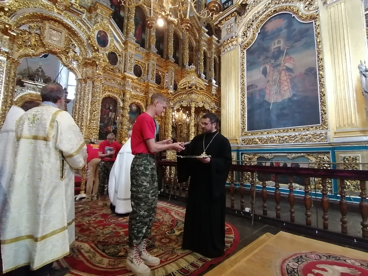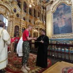 В завершение встречи каждого молящегося окропили святой и вручили образок Смоленской иконы Божией Матери «Одигитрия». Иподиакон Игорь Майоров провел для гостей экскурсию по Свято-Успенскому кафедральному собору.
